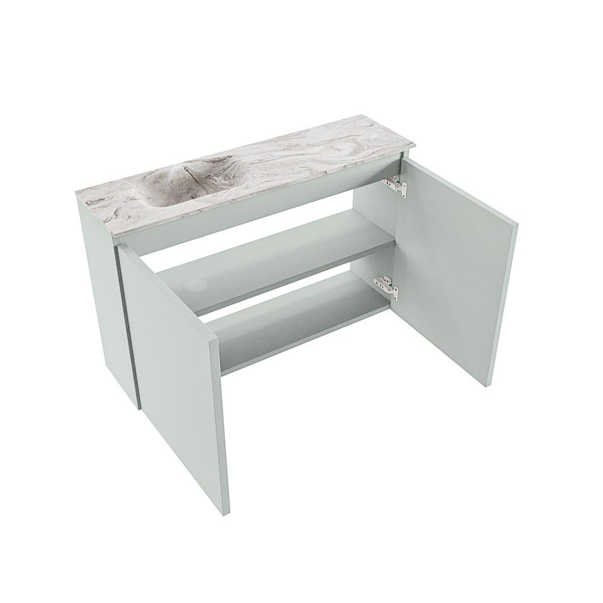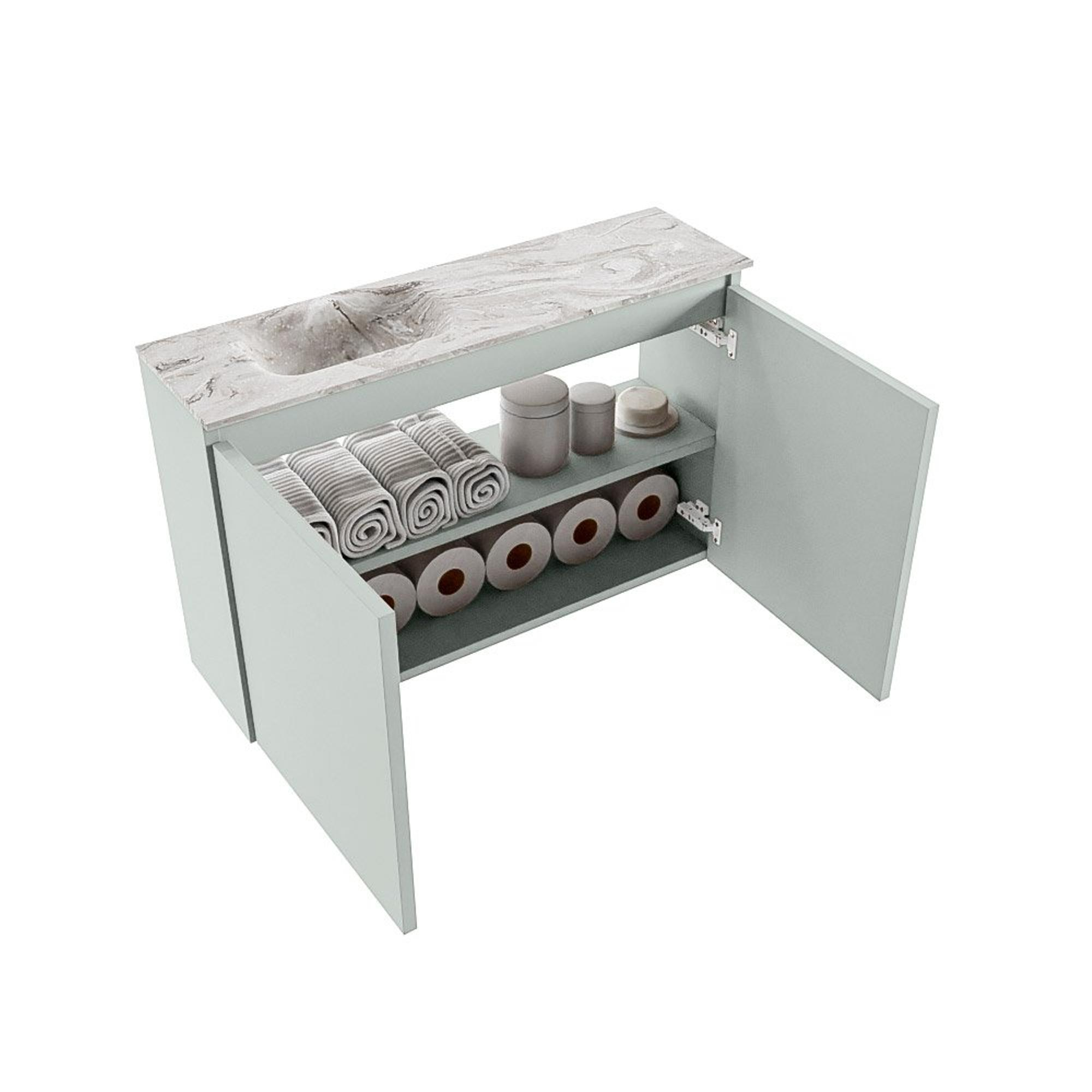 MONDIAZ TURE-DLUX Meuble de toilette 80 cm Greey. Lavabo EDEN Glace position gauche. Avec 1 trou de robinet.