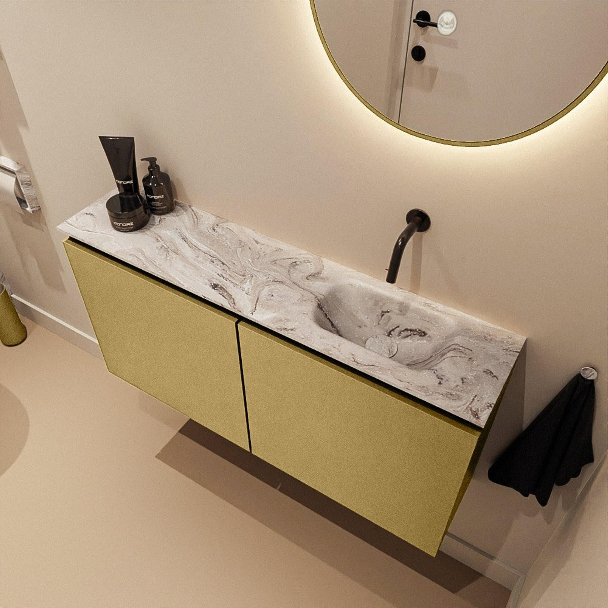 MONDIAZ TURE-DLUX meuble de toilettes 100 cm Oro. EDEN lavabo Glace position à droite. Sans trou de robinet.
