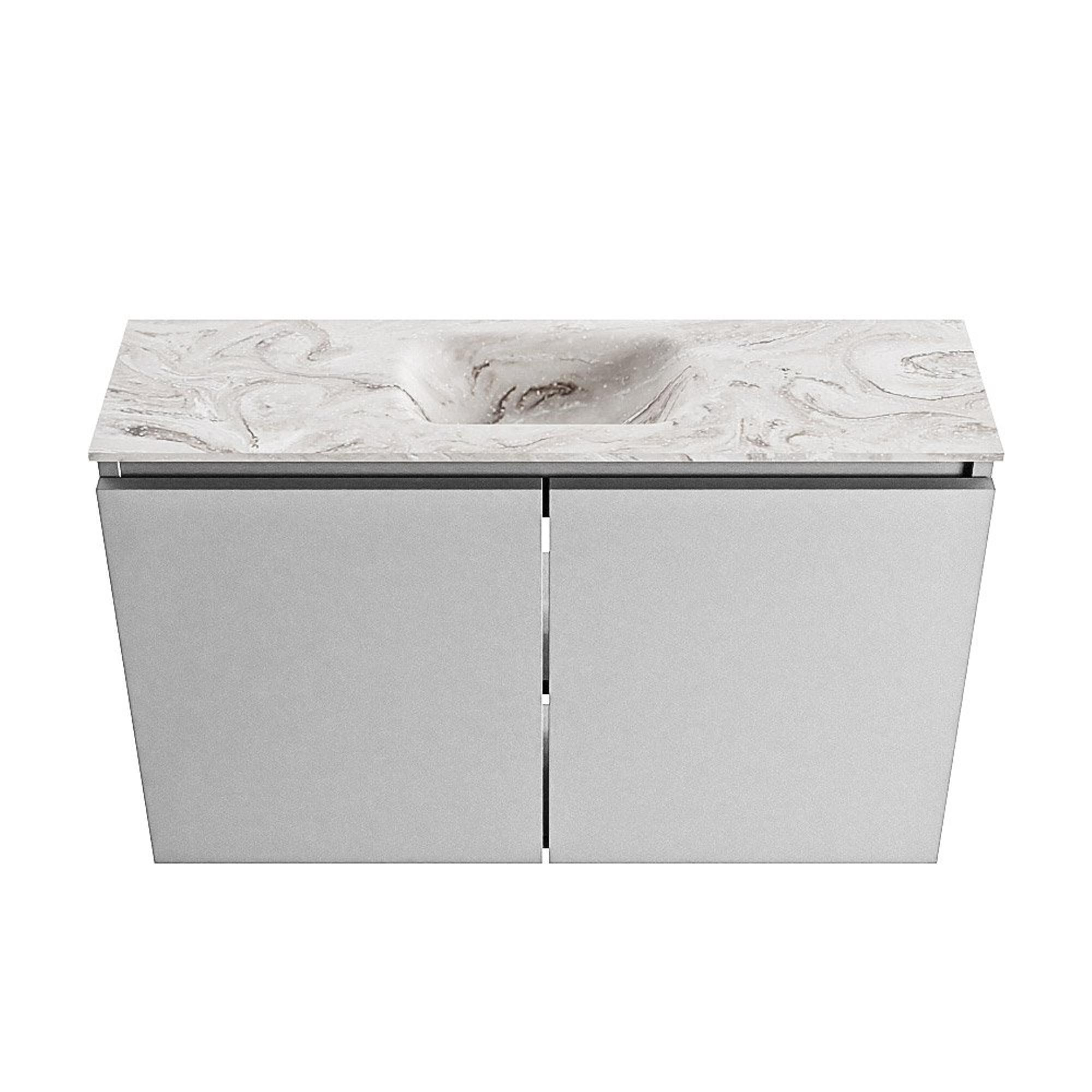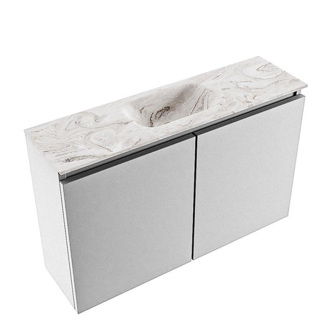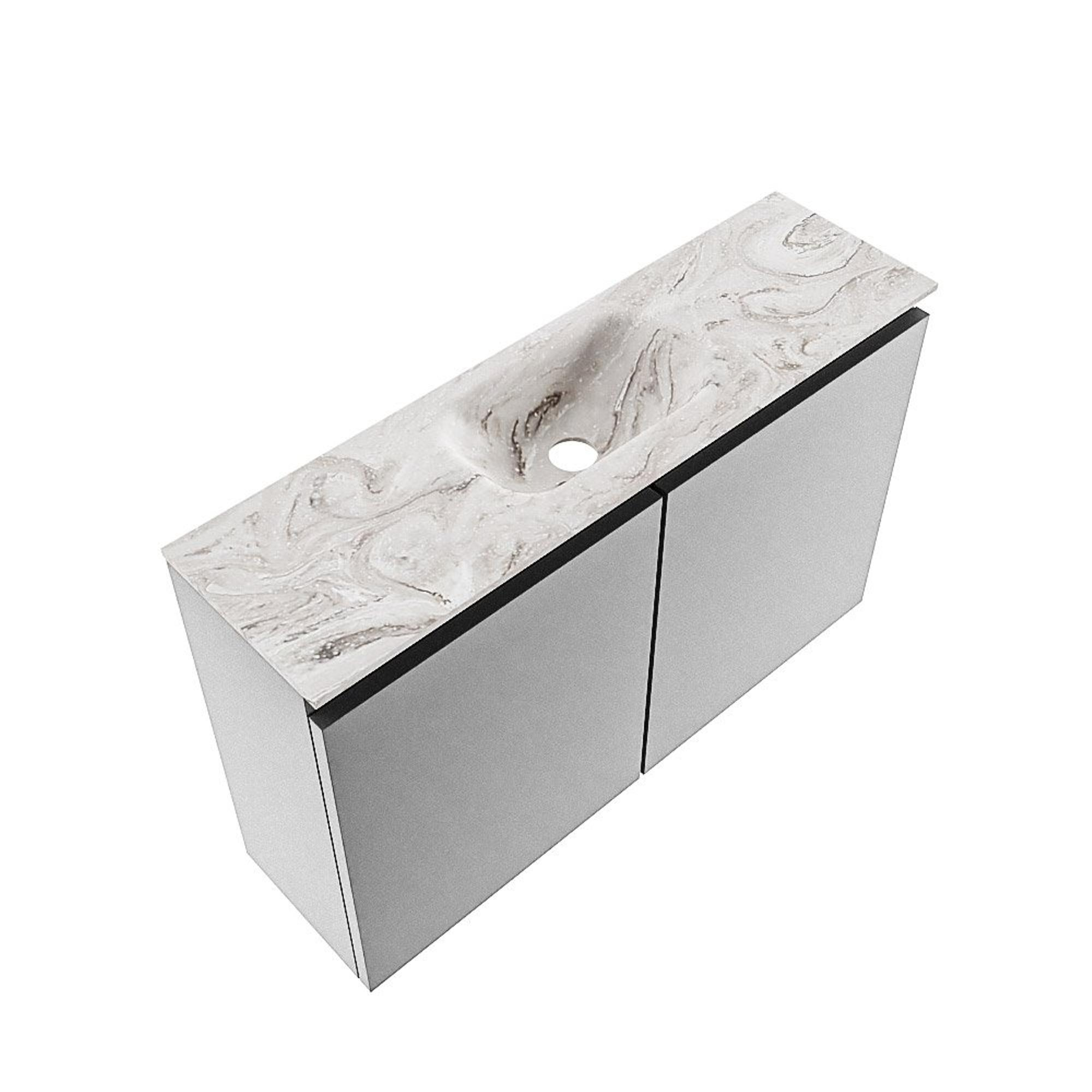 MONDIAZ TURE-DLUX Meuble WC 80 cm Plata. Lavabo EDEN Glace position centrale. Sans trou de robinet.