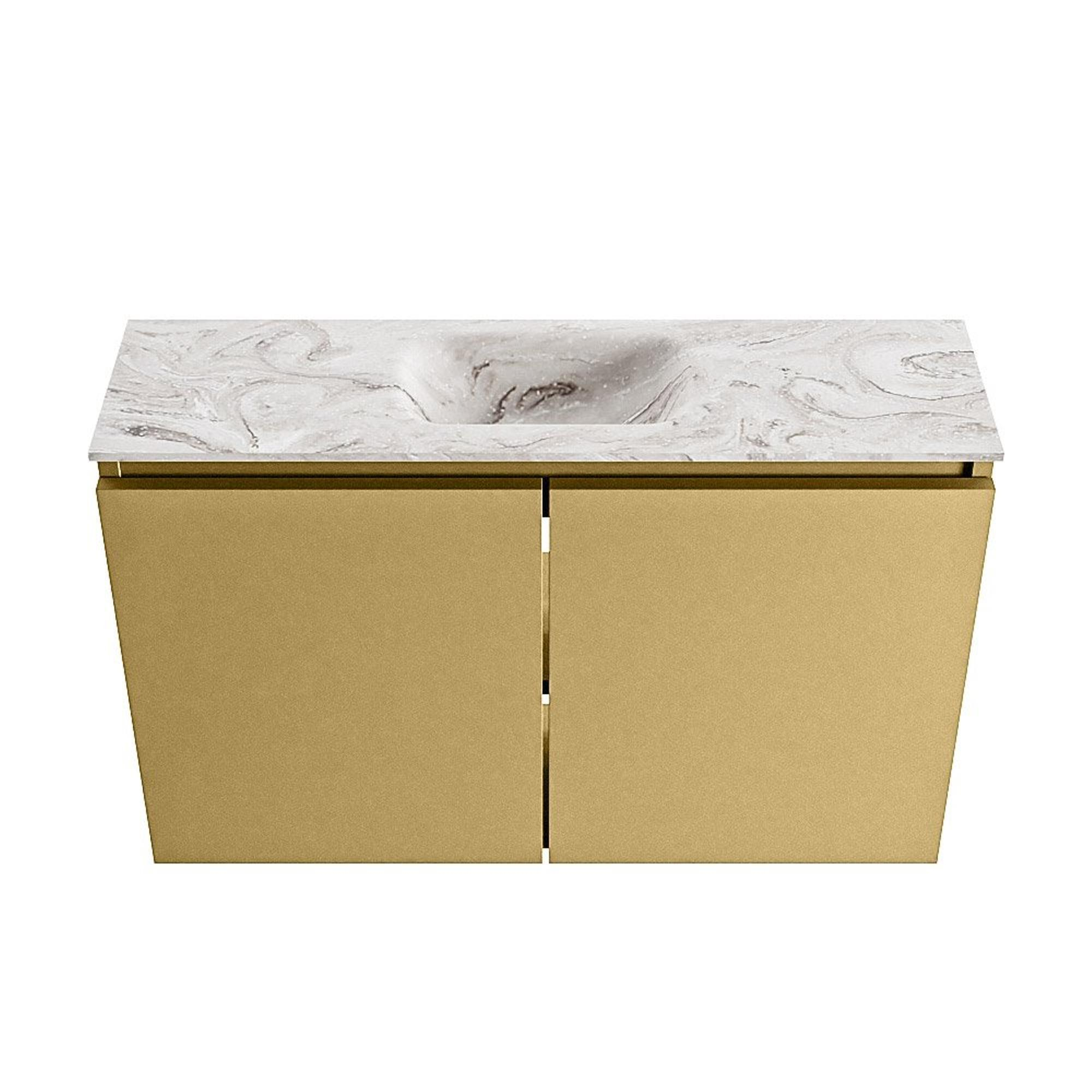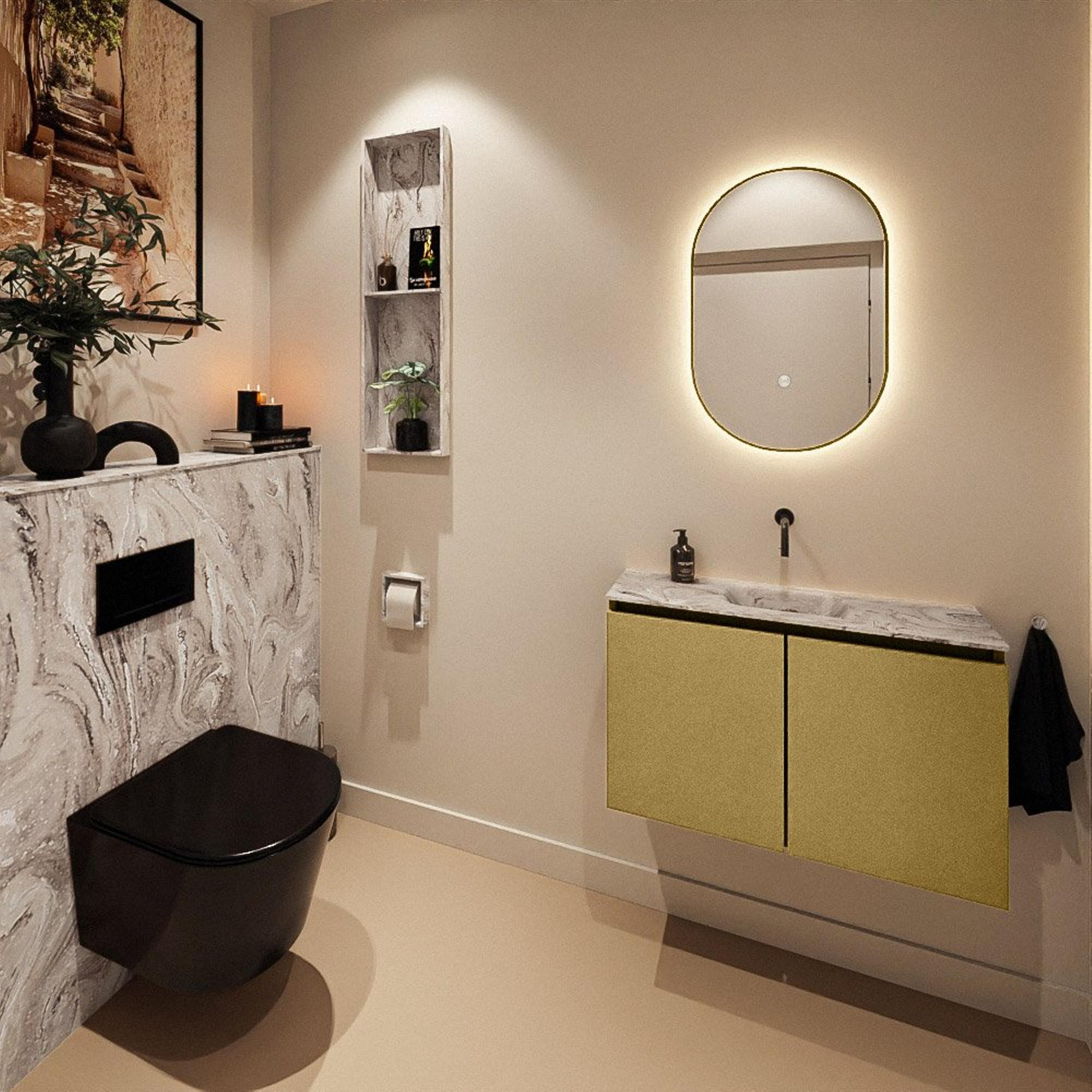 MONDIAZ TURE-DLUX Meuble de toilettes 80 cm Oro. Lavabo EDEN Glace position centrale. Sans trou de robinet.