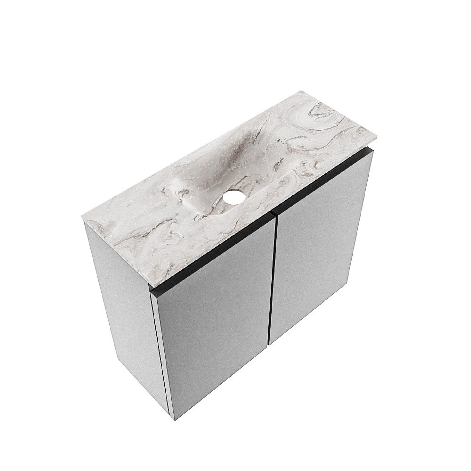 MONDIAZ TURE-DLUX Meuble WC 60cm Plata. EDEN lavabo Glace position milieu. Sans trou de robinet.