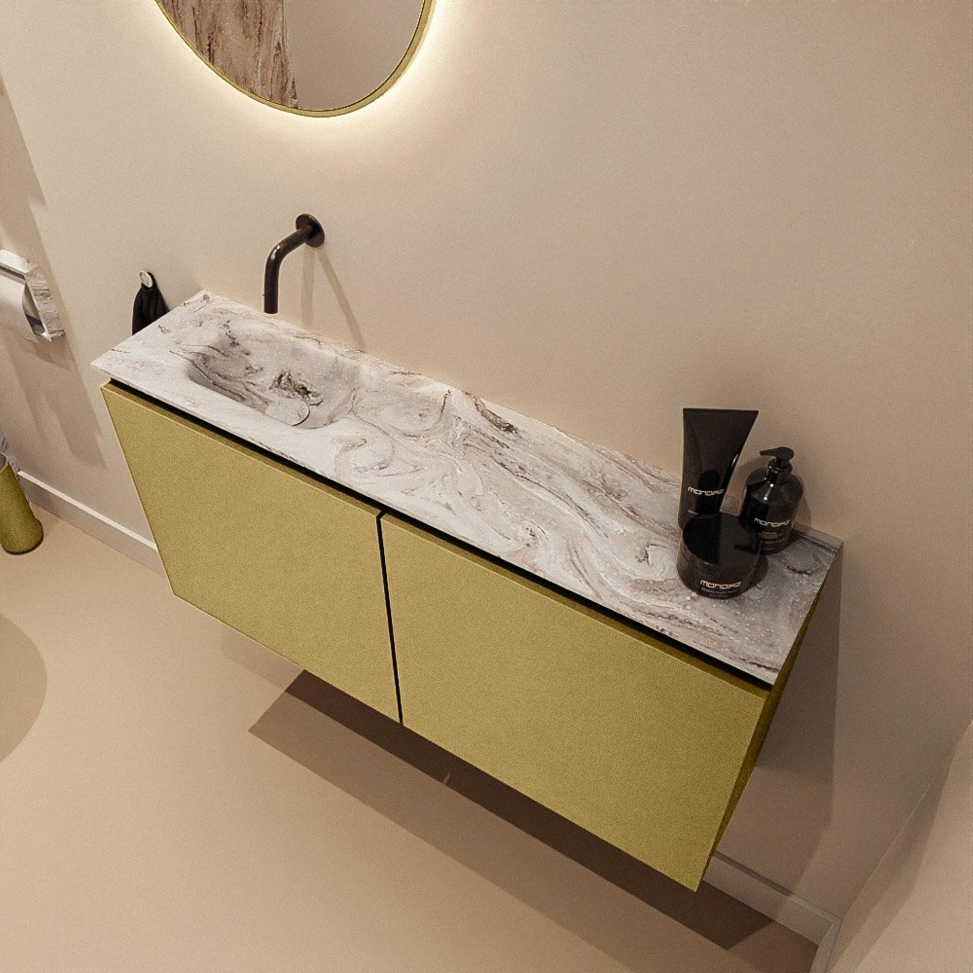 MONDIAZ TURE-DLUX meuble WC 100 cm Oro. EDEN vasque Glace position gauche. Sans trou de robinet.