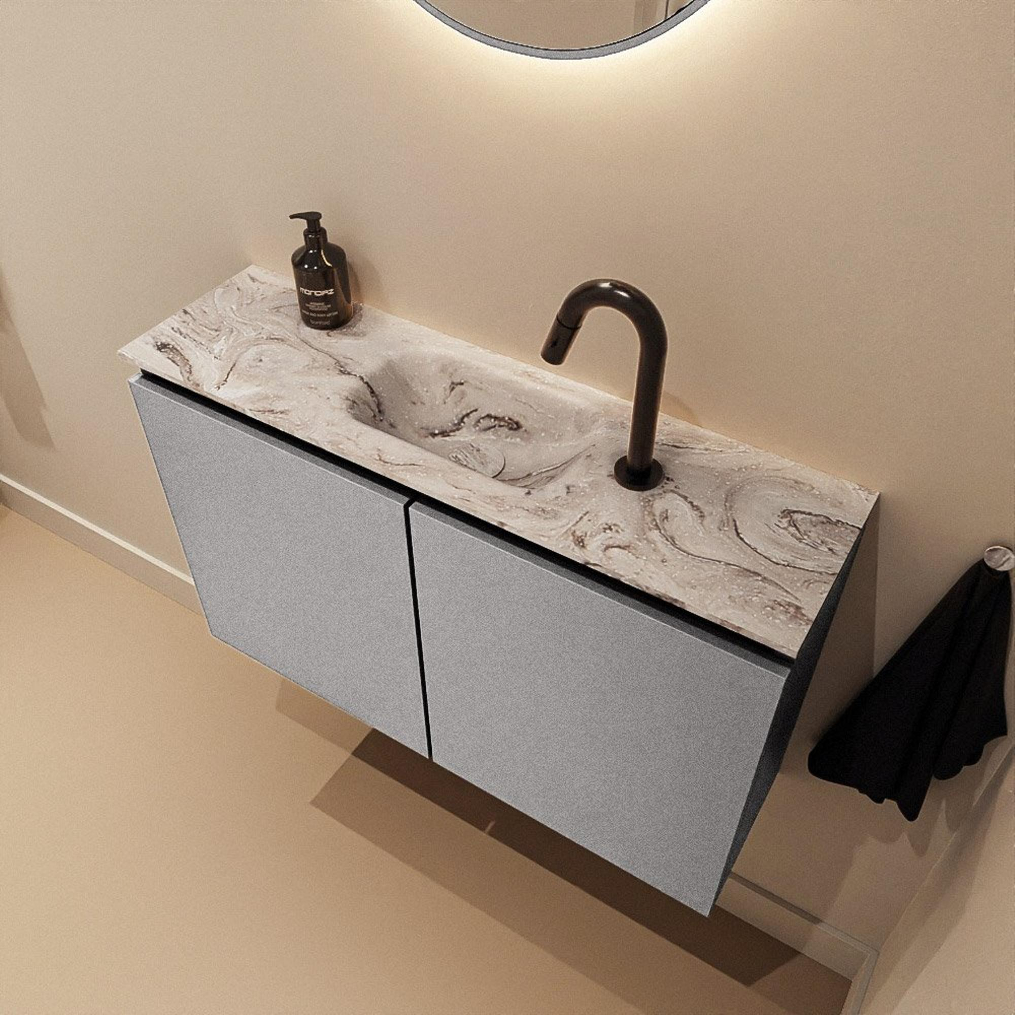 Combinaison élégante du meuble Plata et du lavabo effet marbre