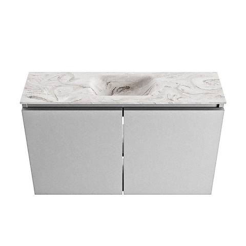 La couleur moderne Plata du meuble constitue une base chic qui s’accorde parfaitement avec le lavabo EDEN aspect marbre en version Glace. Le plan à l’aspect marbre en solid surface paraît luxueux et minimaliste, sans joints visibles, et s’intègre parfaitement dans les salles de bains modernes, de style hôtel chic ou scandinave. La façade sans poignées renforce la ligne épurée du meuble, ce qui offre une apparence calme et haut de gamme dont vous profiterez pendant de nombreuses années. Grâce à la teinte grise neutre, vous pouvez facilement le combiner avec des robinets et accessoires noirs, chromés ou en métal brossé, afin de prolonger entièrement votre propre style.