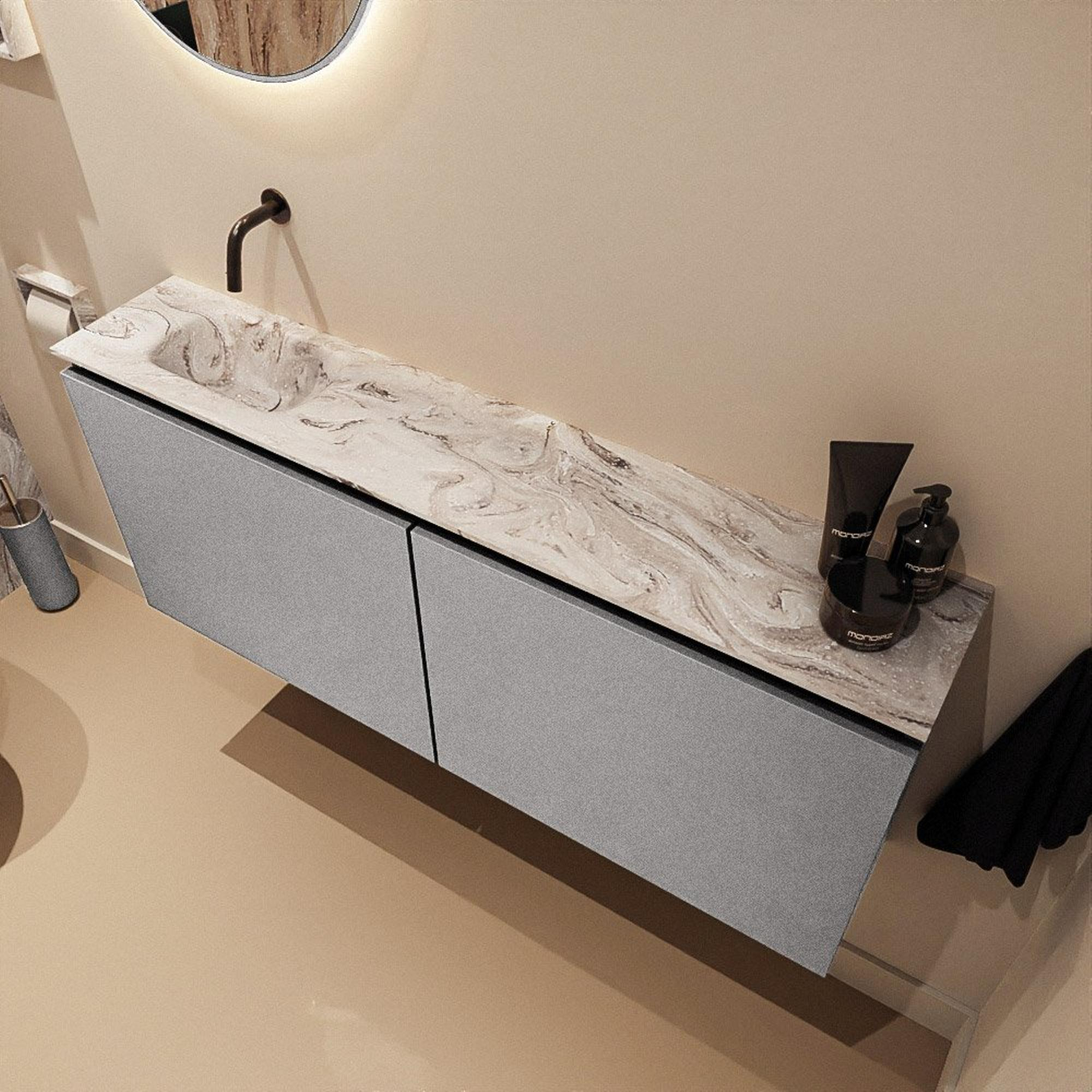 MONDIAZ TURE-DLUX Meuble de WC 120 cm Plata. EDEN lavabo Glace position gauche. Sans trou de robinet.