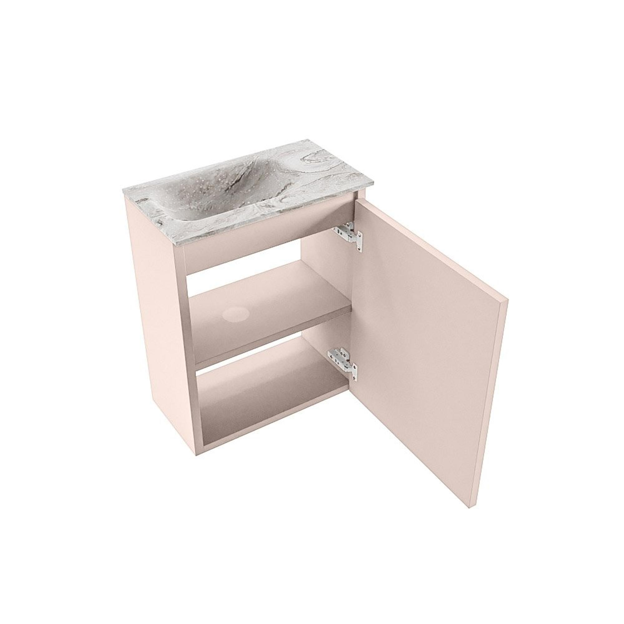 MONDIAZ TURE-DLUX Meuble de toilettes 40 cm Rosee. EDEN vasque Glace position à gauche. Avec 1 trou de robinet.