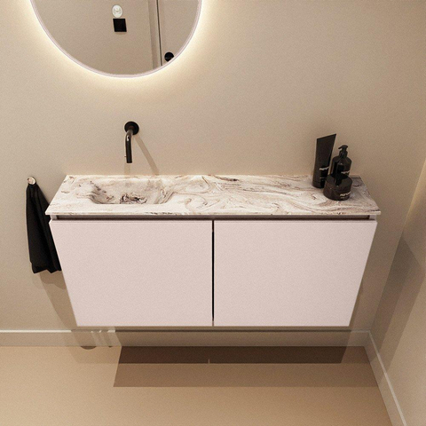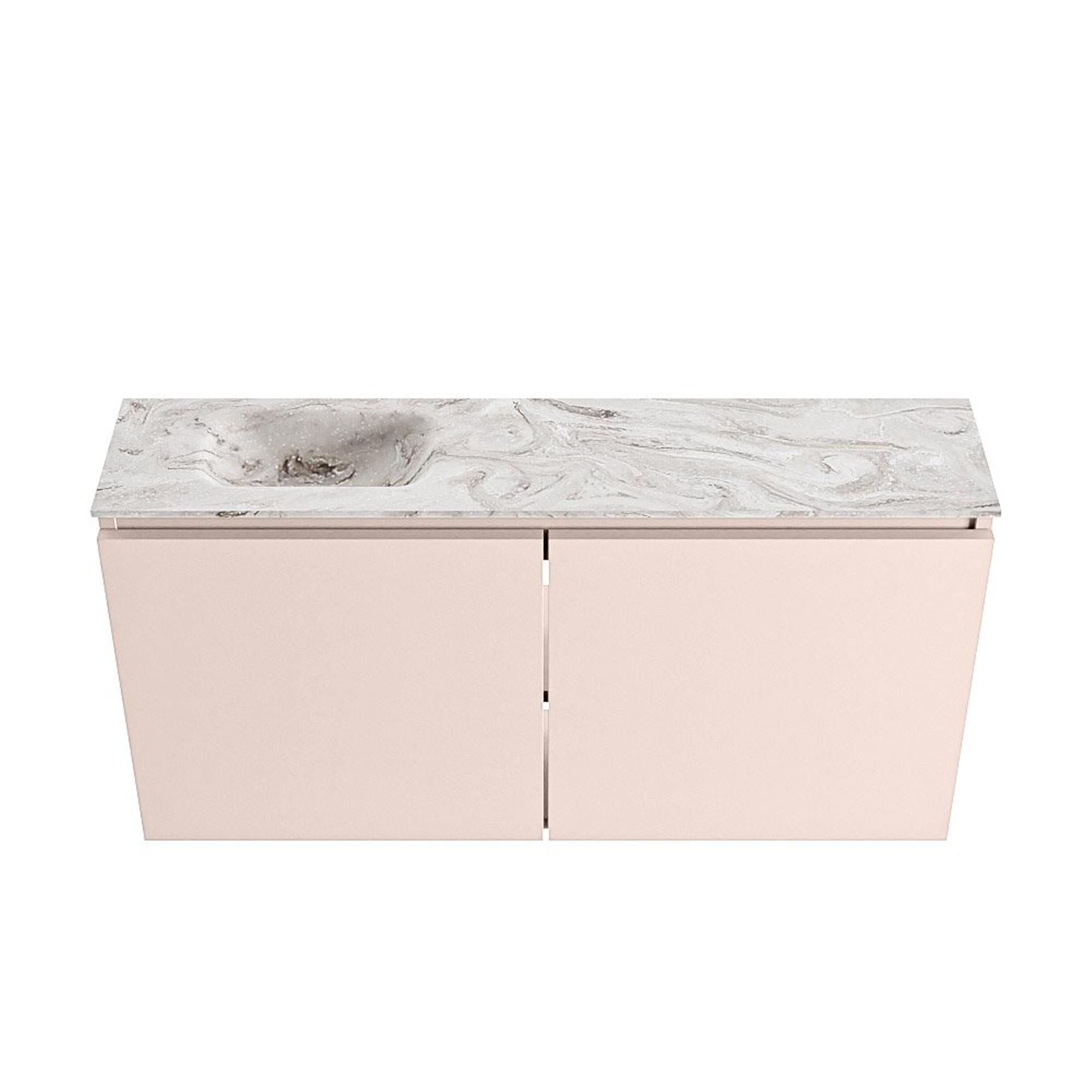 MONDIAZ TURE-DLUX meuble WC 100 cm Rosee. Lavabo EDEN Glace position gauche. Sans trou de robinet.
