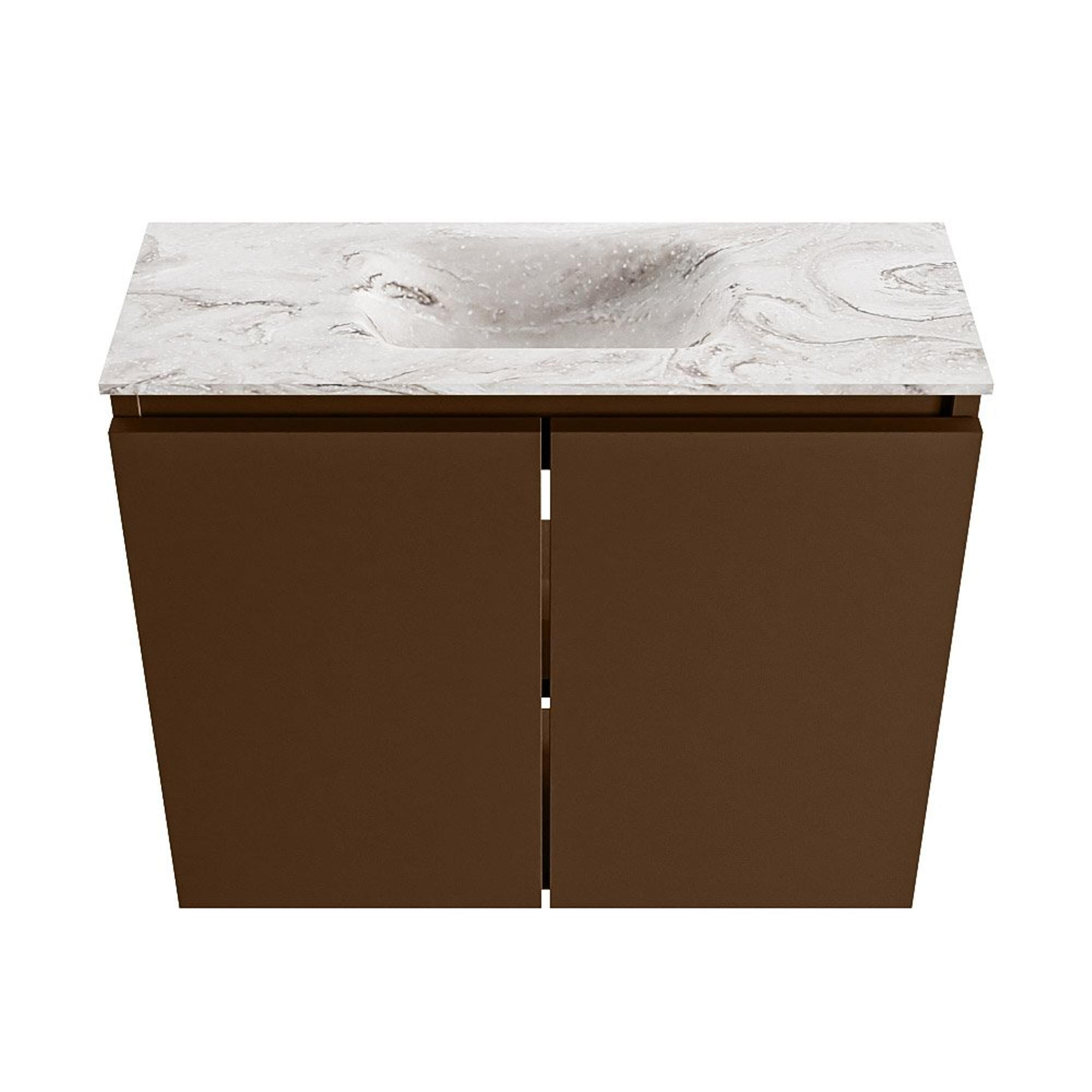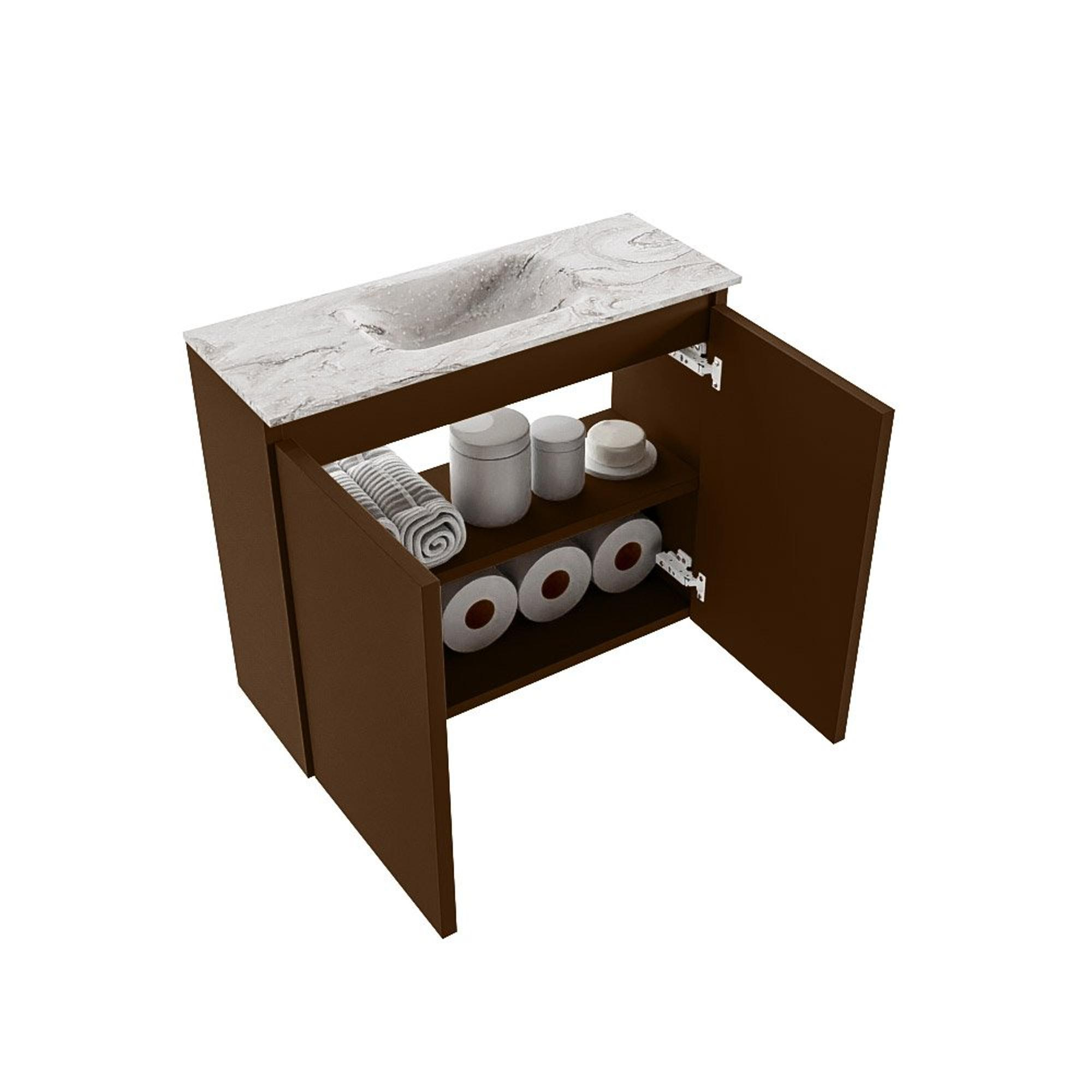 MONDIAZ TURE-DLUX meuble WC 60 cm Rust. EDEN lavabo Glace position centrale. Avec 1 trou de robinet.