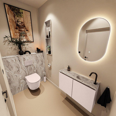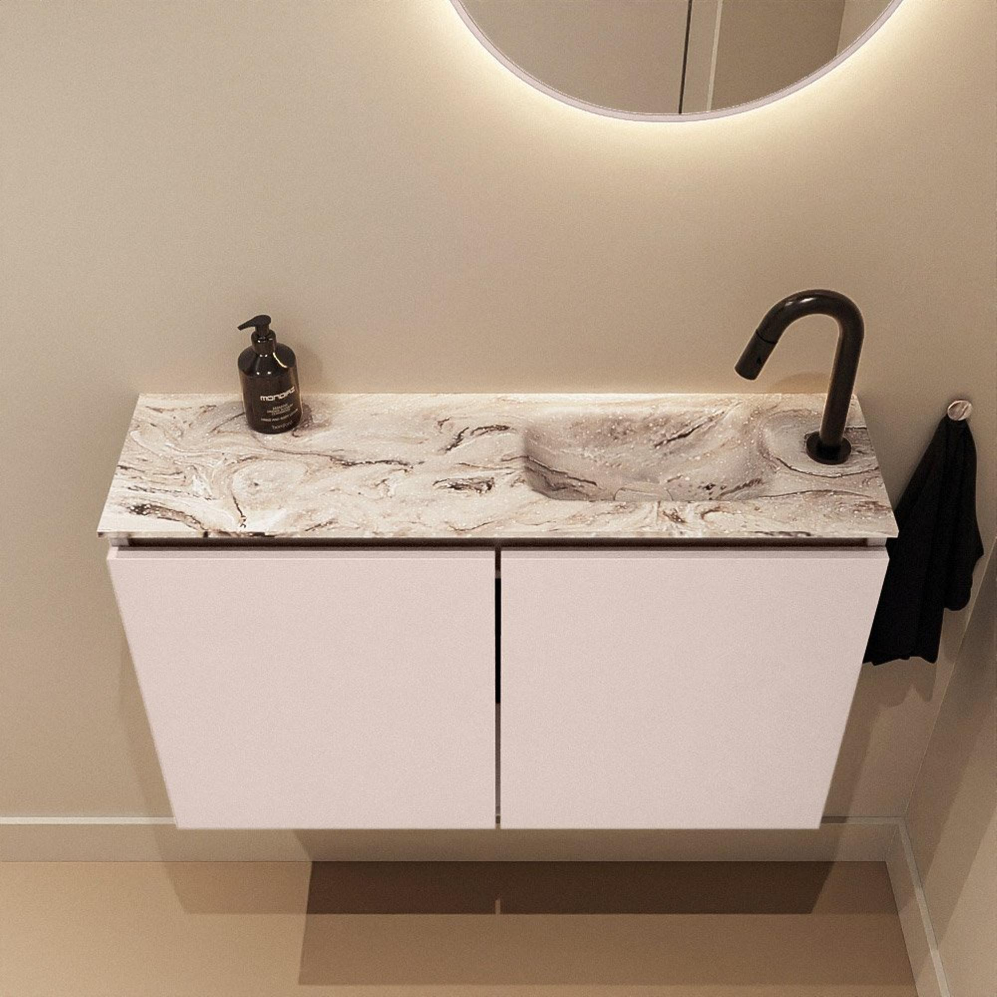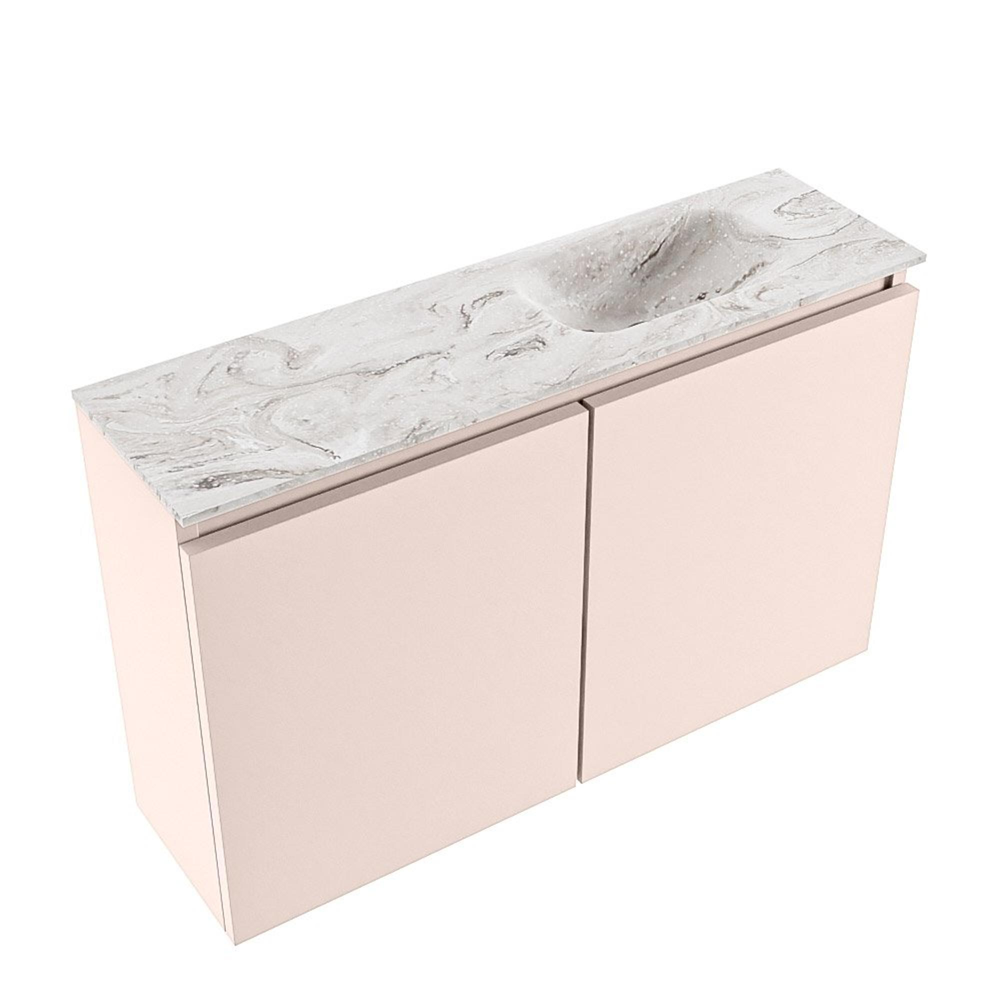 MONDIAZ TURE-DLUX Meuble de toilettes 80cm Rosee. EDEN lavabo Glace position droite. Avec 1 trou de robinet.