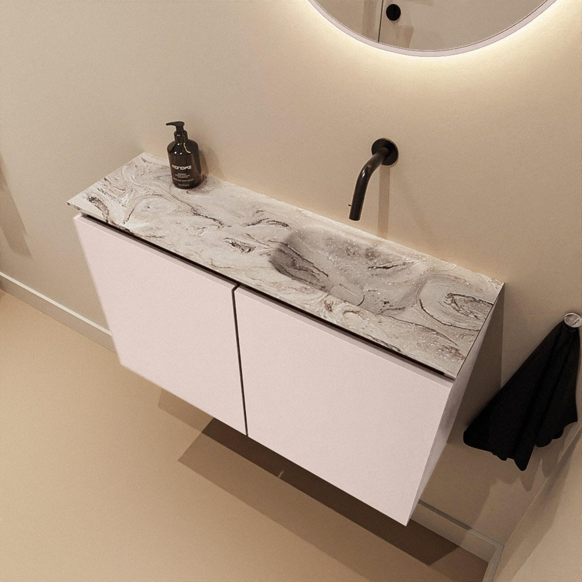 MONDIAZ TURE-DLUX Meuble de toilettes 80 cm Rosee. EDEN vasque Glace position droite. Sans trou de robinet.