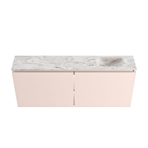 MONDIAZ TURE-DLUX Meuble de toilettes 120 cm Rosee. Lavabo EDEN Glace position à droite. Avec 1 trou de robinet.