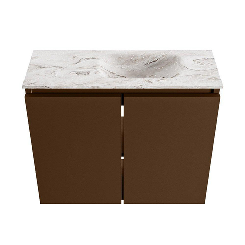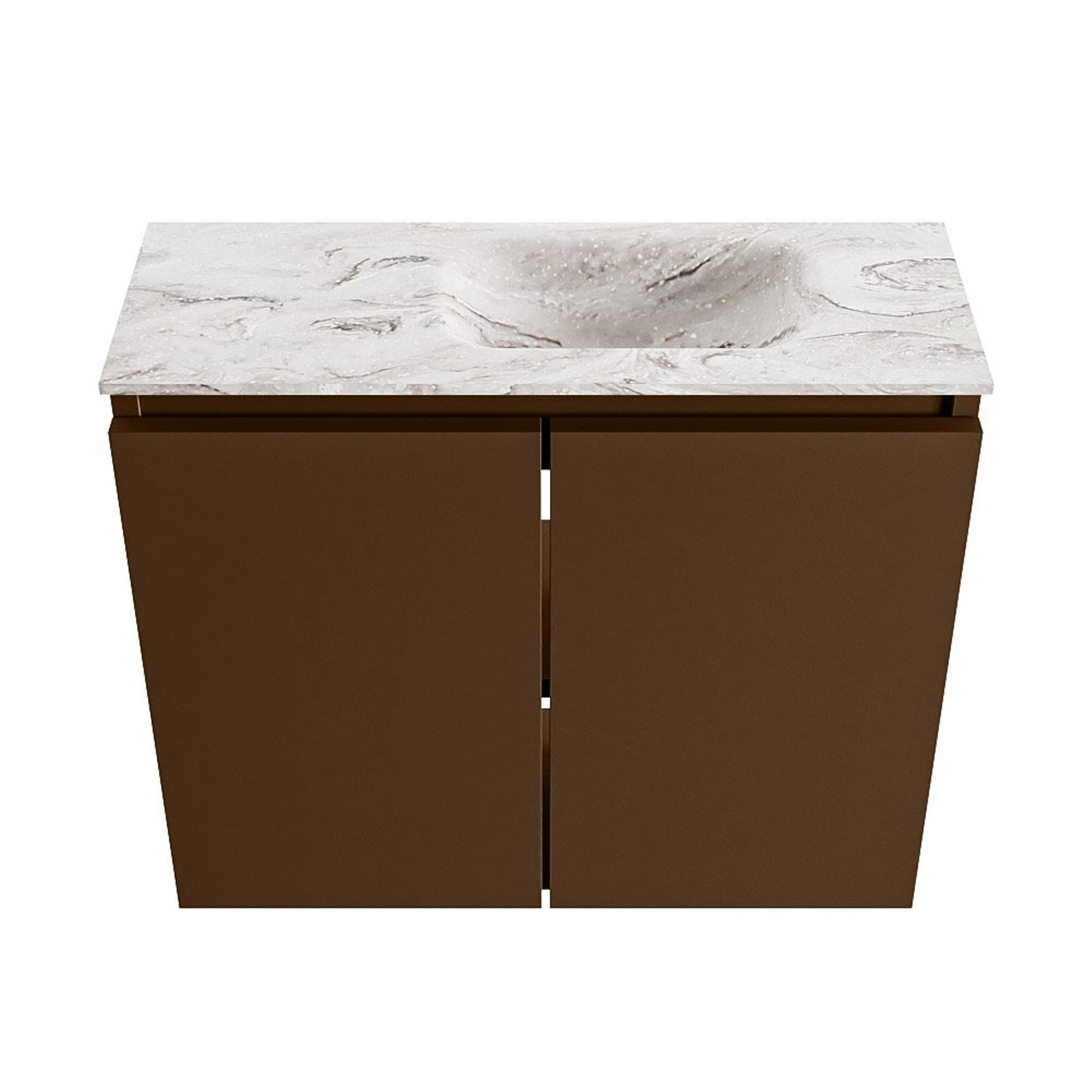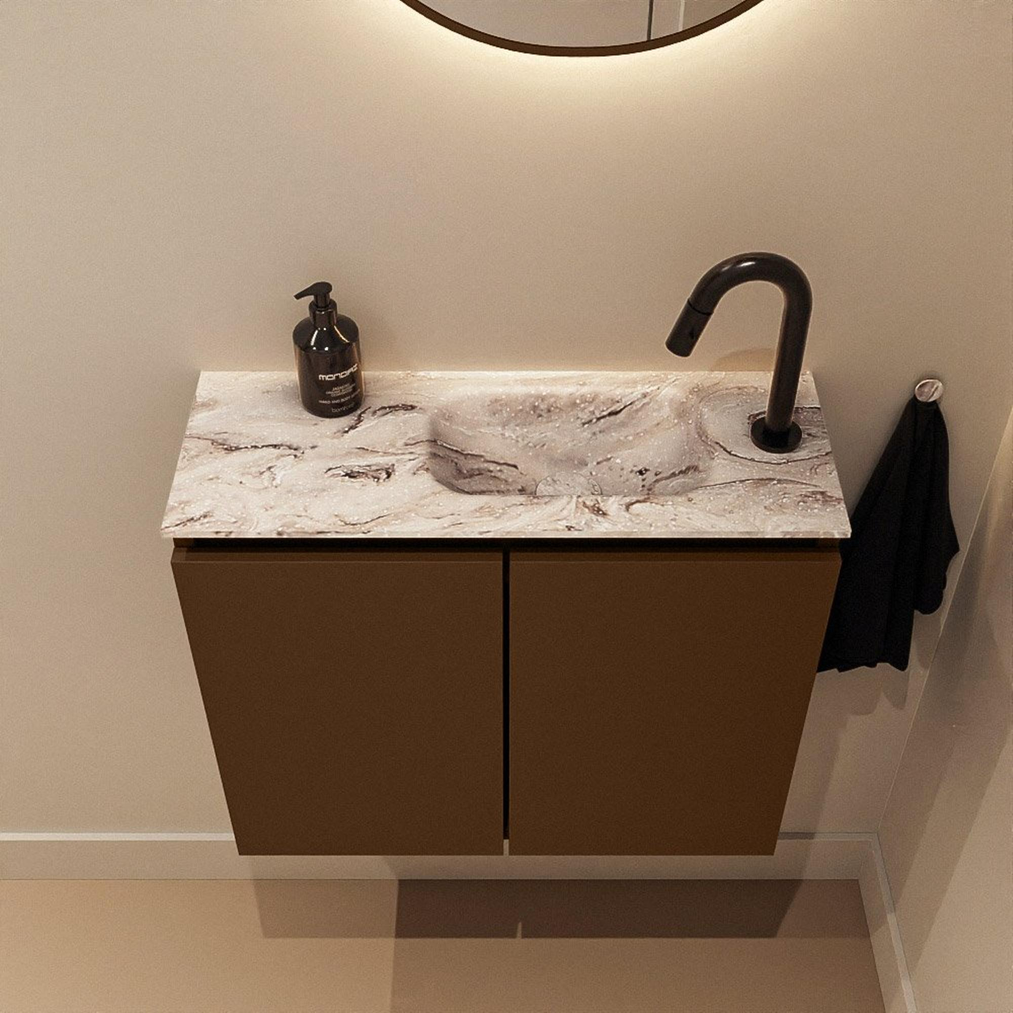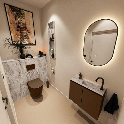 MONDIAZ TURE-DLUX Meuble de toilettes 60 cm Rust. Lavabo EDEN Glace position à droite. Avec 1 trou de robinet.