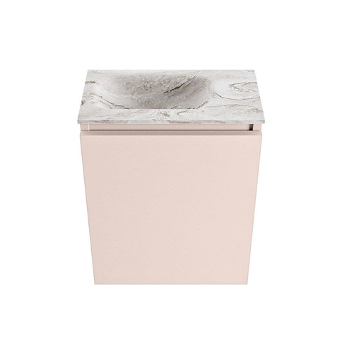 MONDIAZ TURE-DLUX Meuble de toilettes 40 cm Rosee. Vasque EDEN Glace position gauche. Sans trou de robinet.