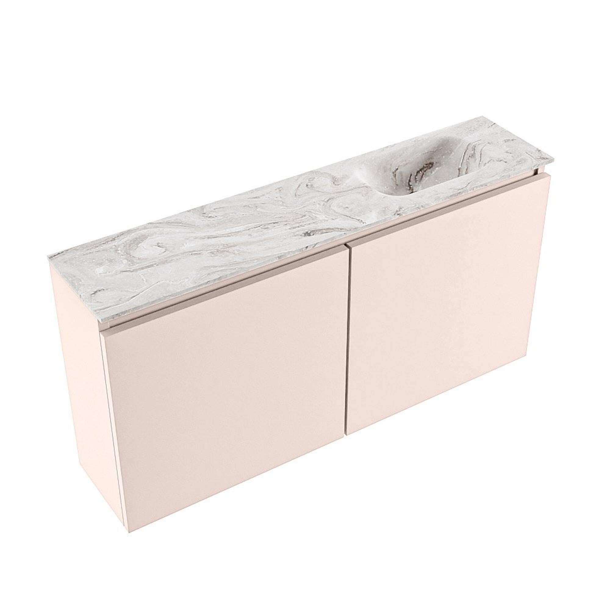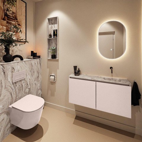 MONDIAZ TURE-DLUX meuble WC 100cm Rosee. Lavabo EDEN Glace position droite. Sans trou de robinet.