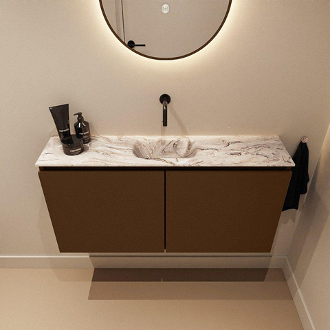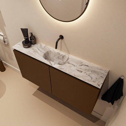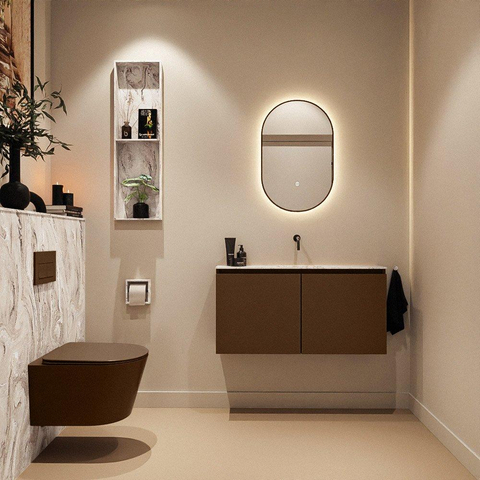 MONDIAZ TURE-DLUX Meuble WC 100 cm Rust. Lavabo EDEN Glace position milieu. Sans trou de robinet.