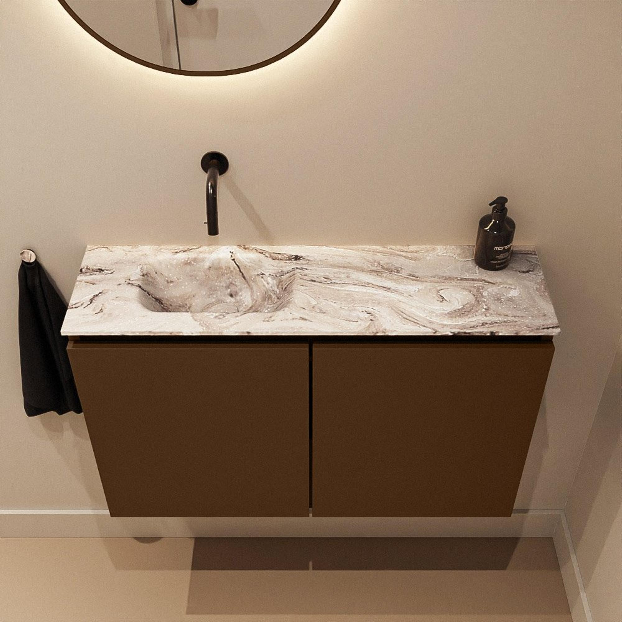 MONDIAZ TURE-DLUX Meuble WC 80 cm Rust. EDEN lavabo Glace position gauche. Sans trou de robinet.