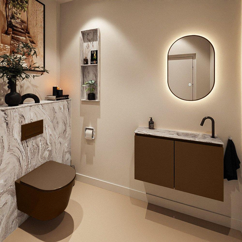MONDIAZ TURE-DLUX meuble de toilettes 80 cm Rust. EDEN lavabo Glace position droite. Avec 1 trou de robinet.