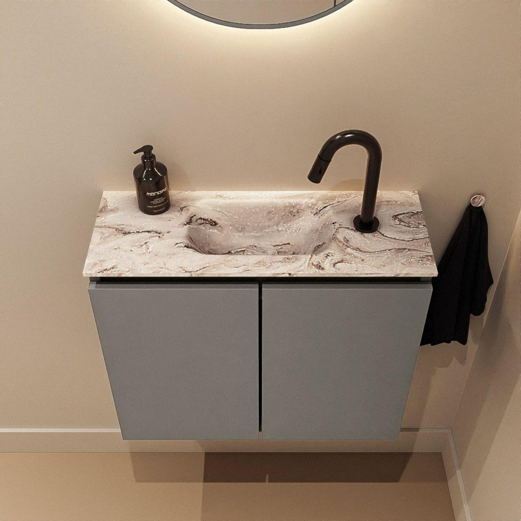 MONDIAZ TURE-DLUX Meuble WC 60 cm Smoke. EDEN lavabo Glace position milieu. Avec 1 trou de robinet.