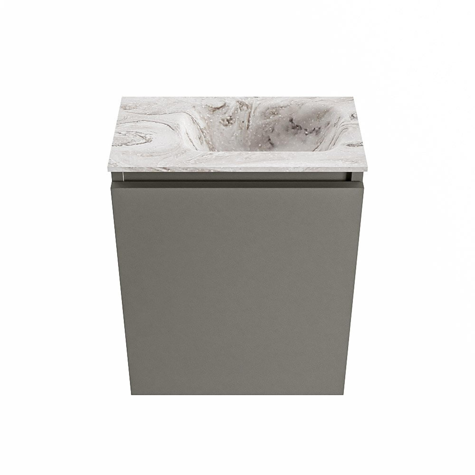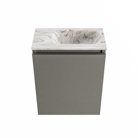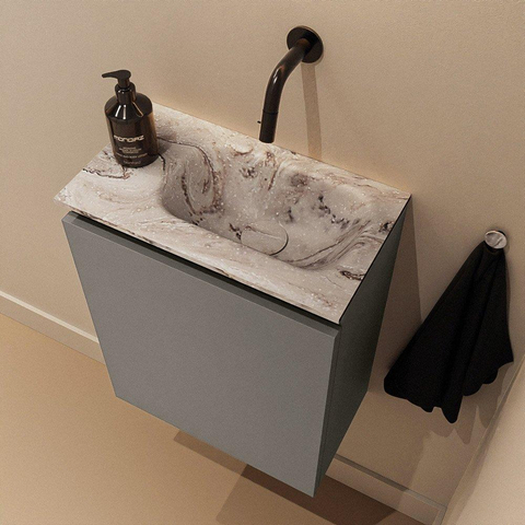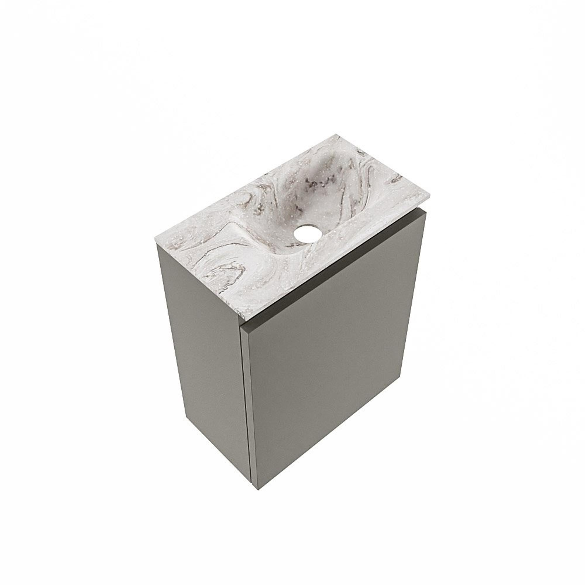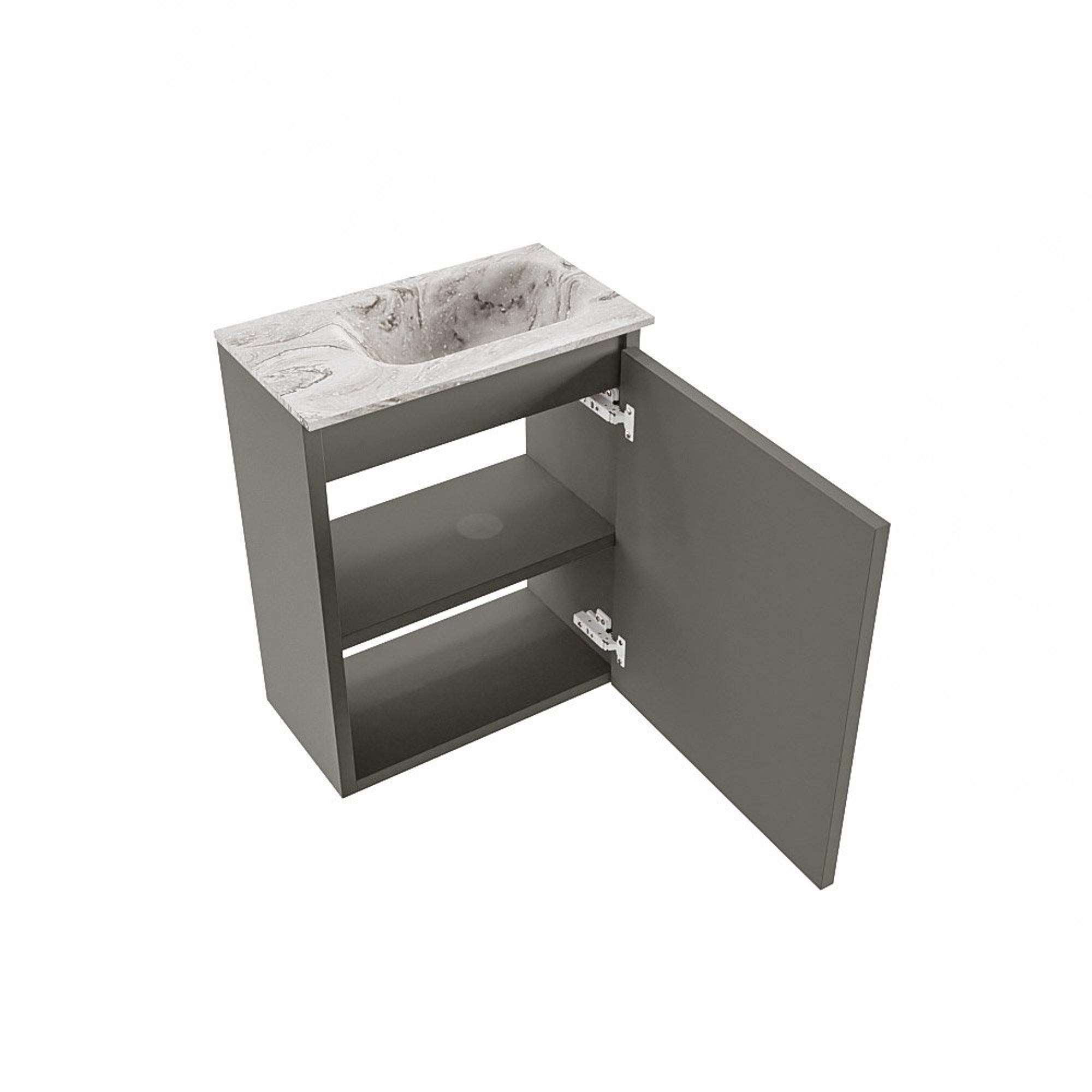 MONDIAZ TURE-DLUX Meuble de toilettes 40cm Smoke. EDEN lavabo Glace position à droite. Sans trou de robinet.