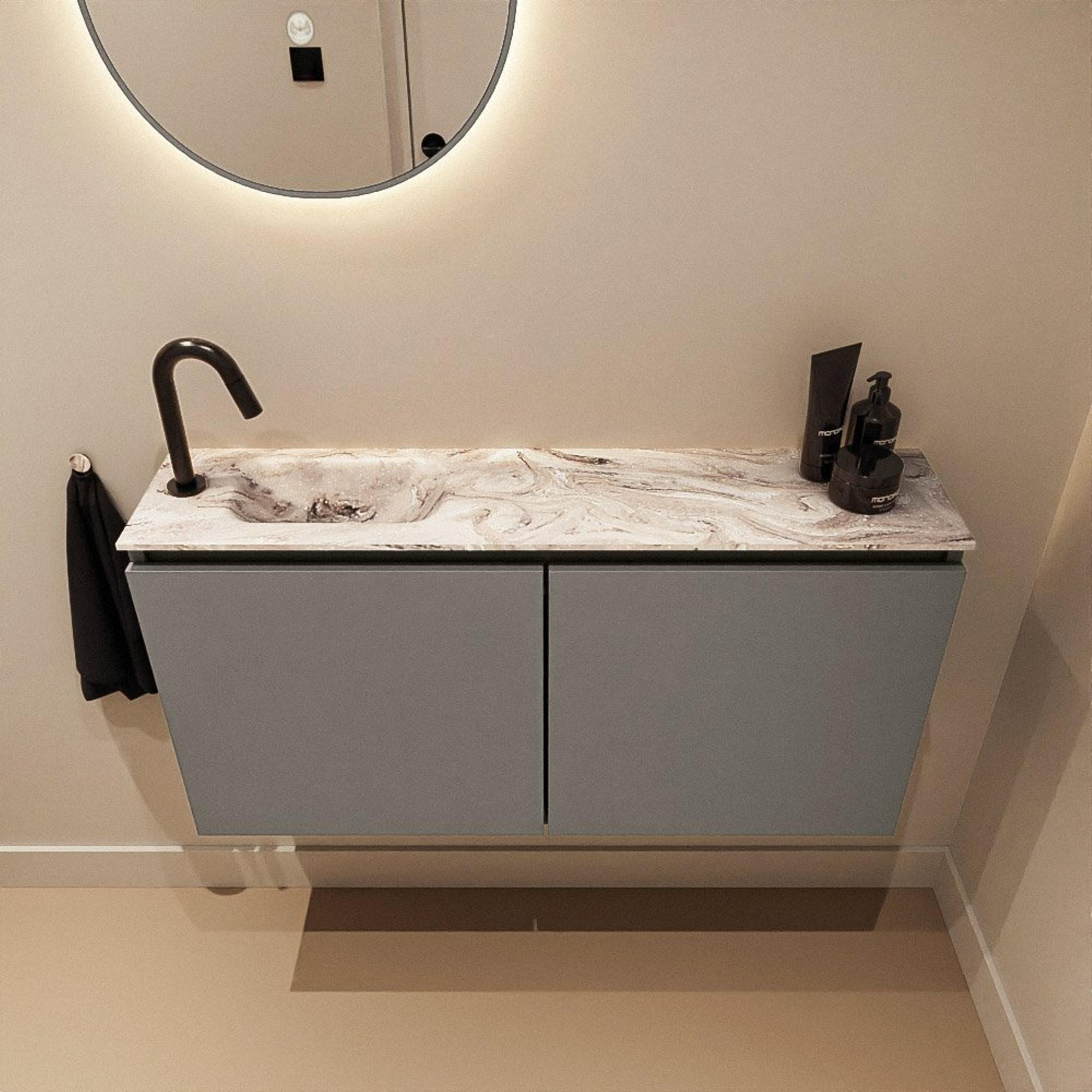 MONDIAZ TURE-DLUX Meuble toilette - 100cm - Smoke - EDEN - vasque Glace - position gauche - 1 trou de robinet