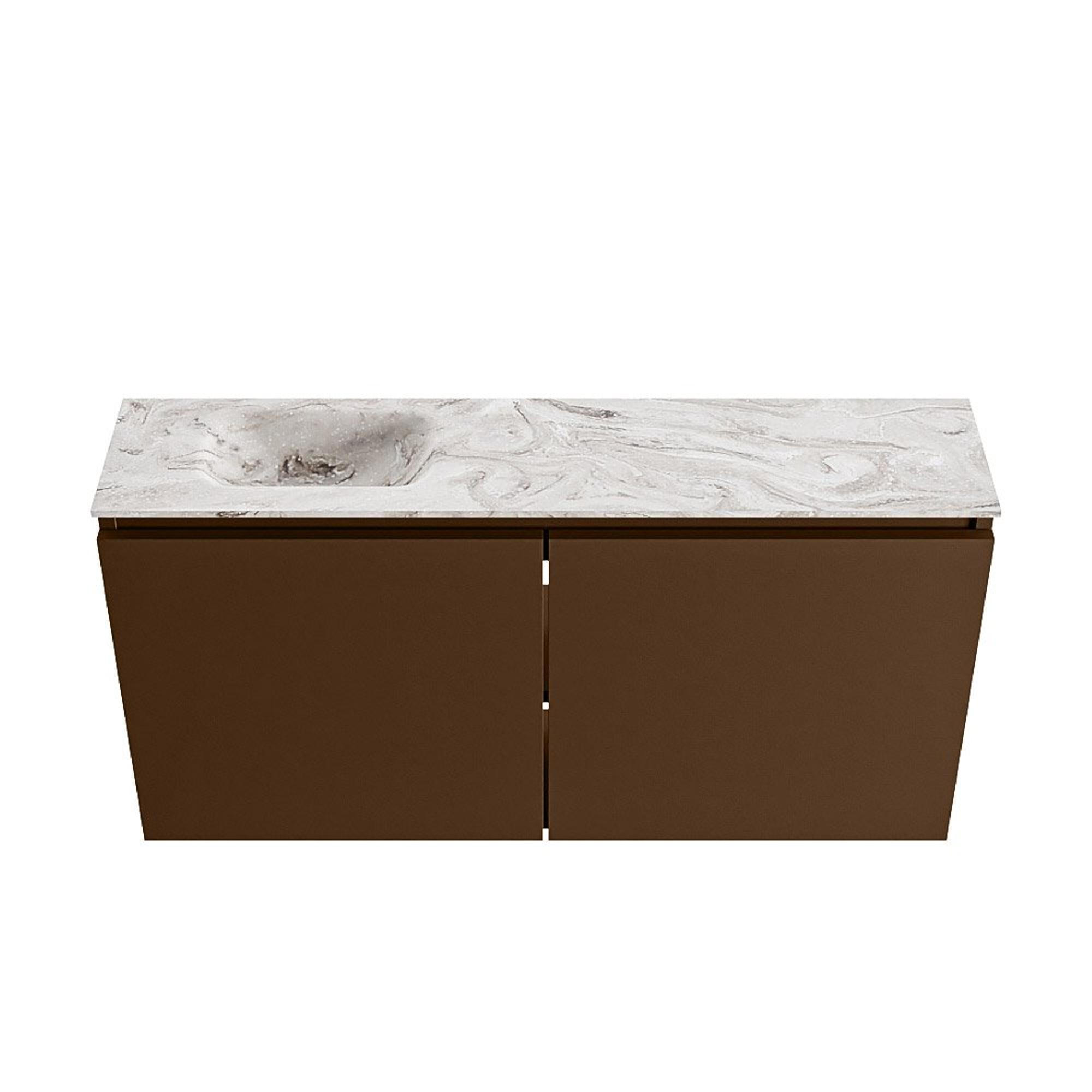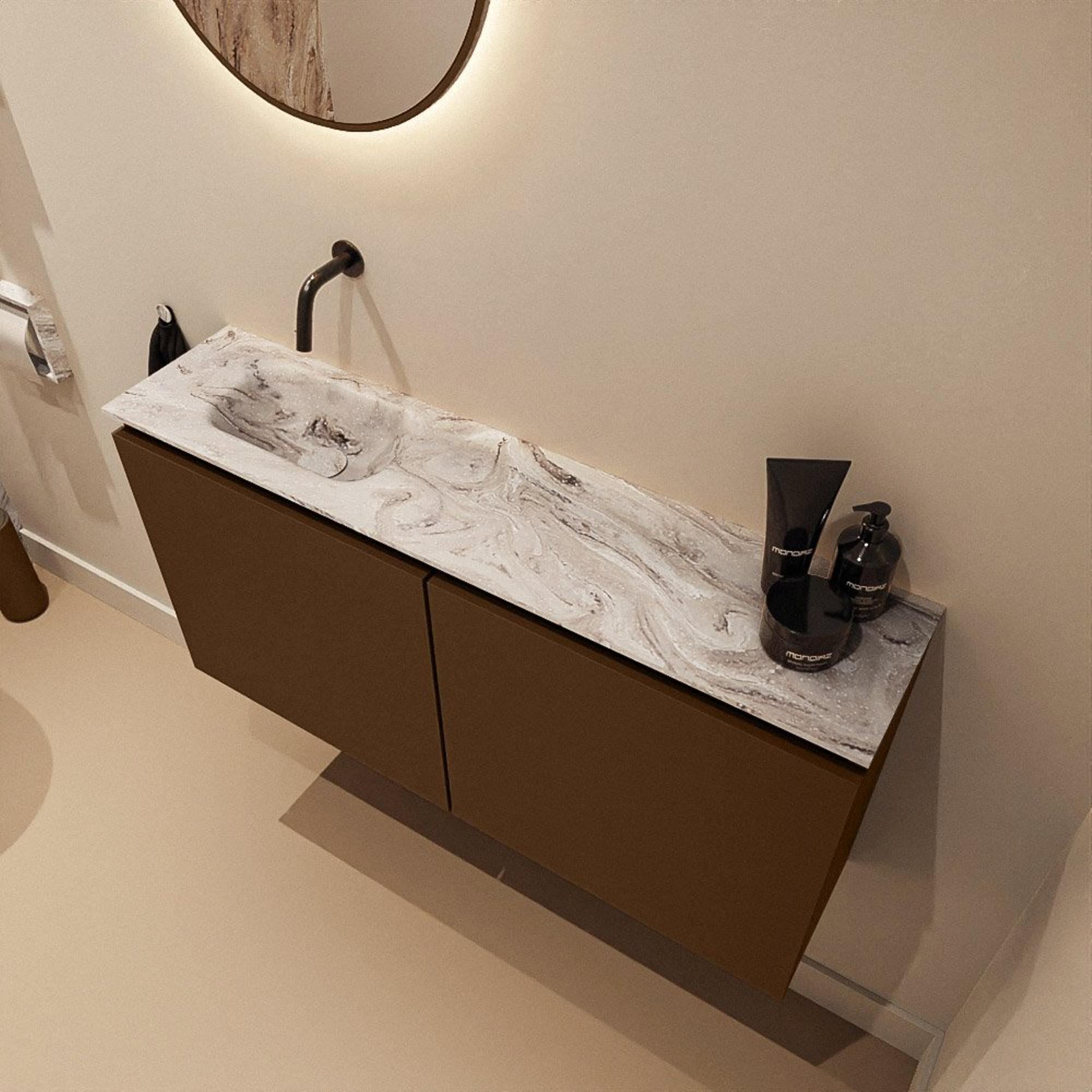 MONDIAZ TURE-DLUX Meuble WC 100 cm Rust. EDEN lavabo Glace position gauche. Sans trou de robinet.