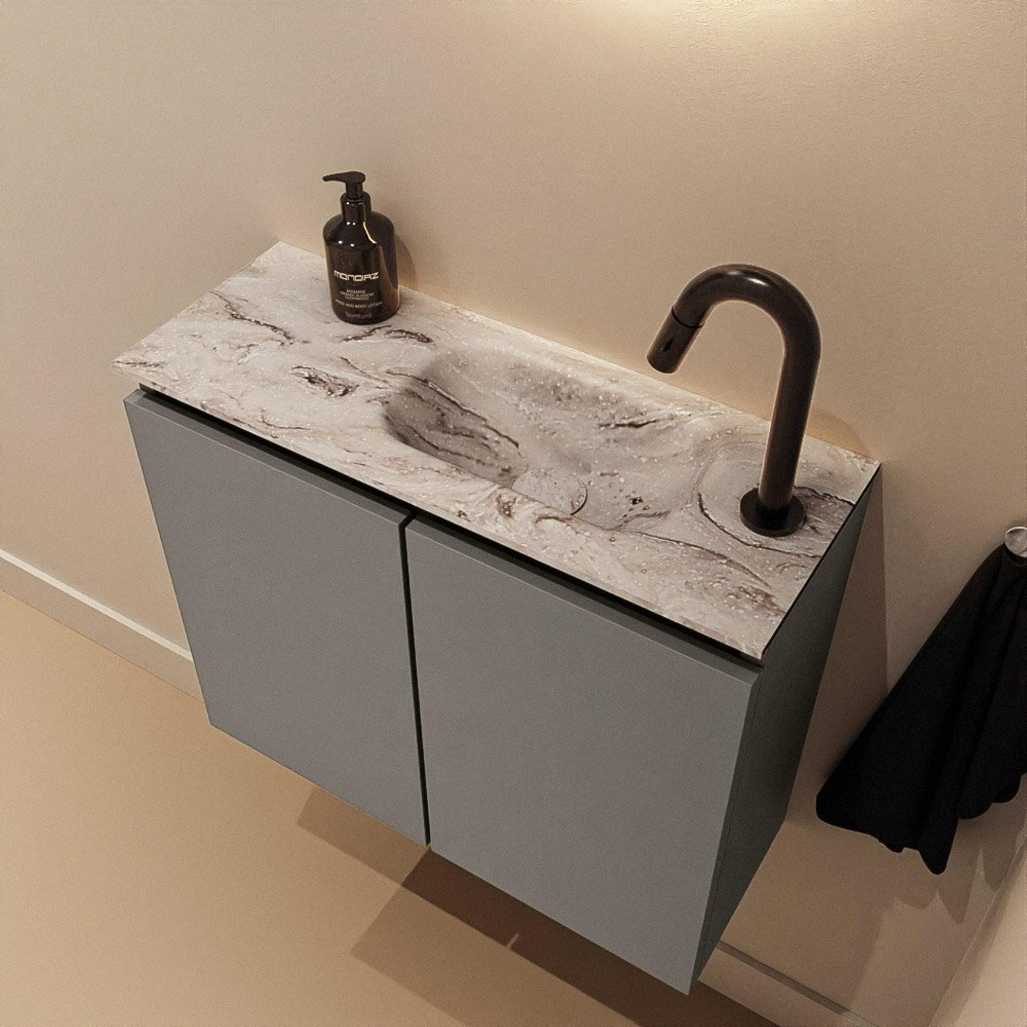 MONDIAZ TURE-DLUX Meuble de toilettes 60 cm Smoke. EDEN lavabo Glace position droite. Avec 1 trou de robinet.