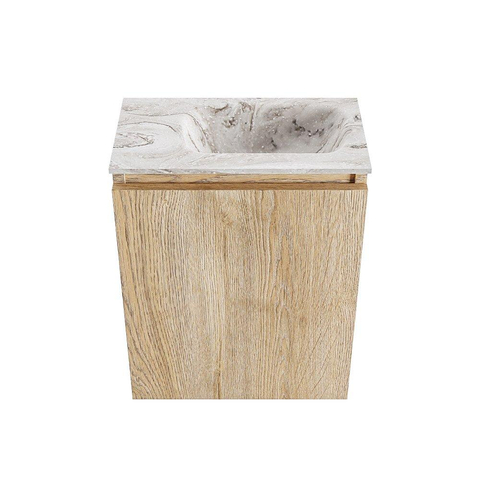 MONDIAZ TURE-DLUX Meuble de toilettes 40 cm Washed Oak. Lavabo EDEN Glace position droite. Avec 1 trou de robinet.