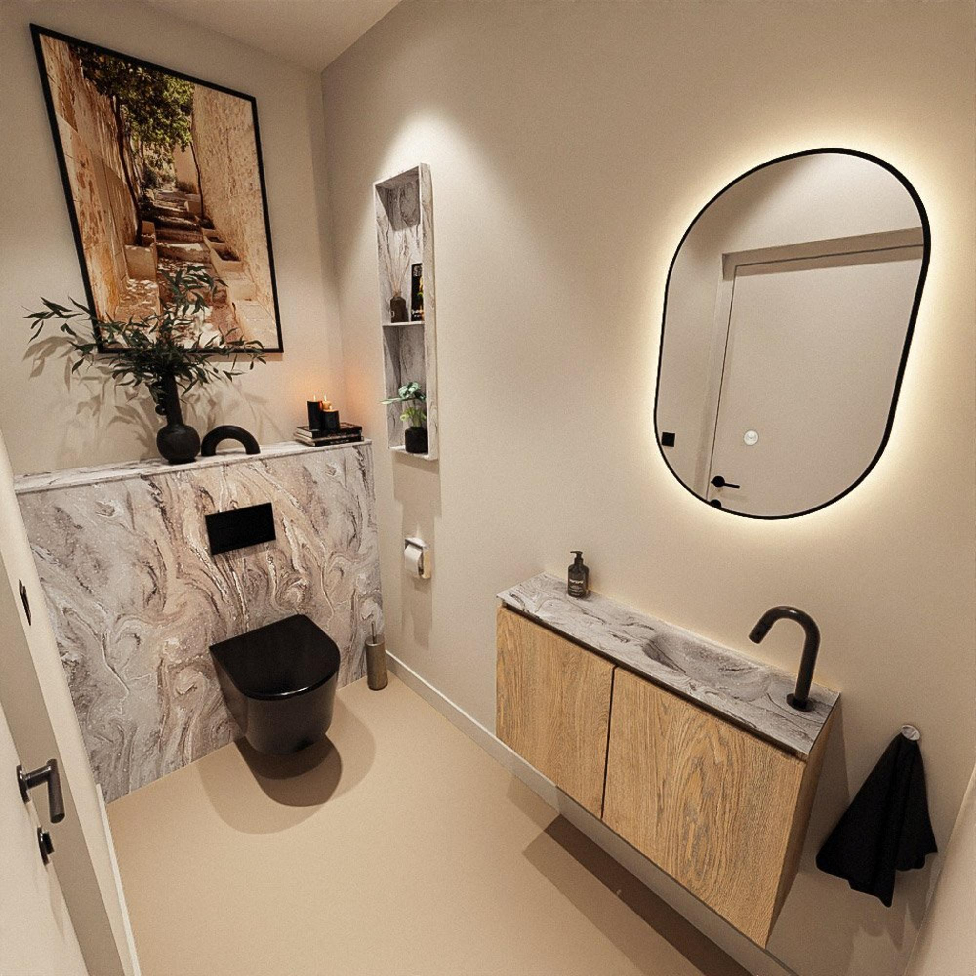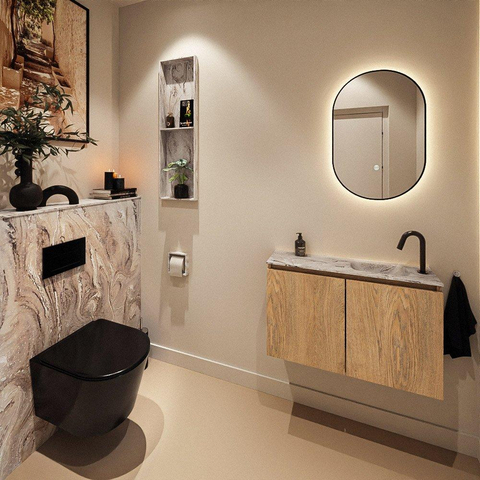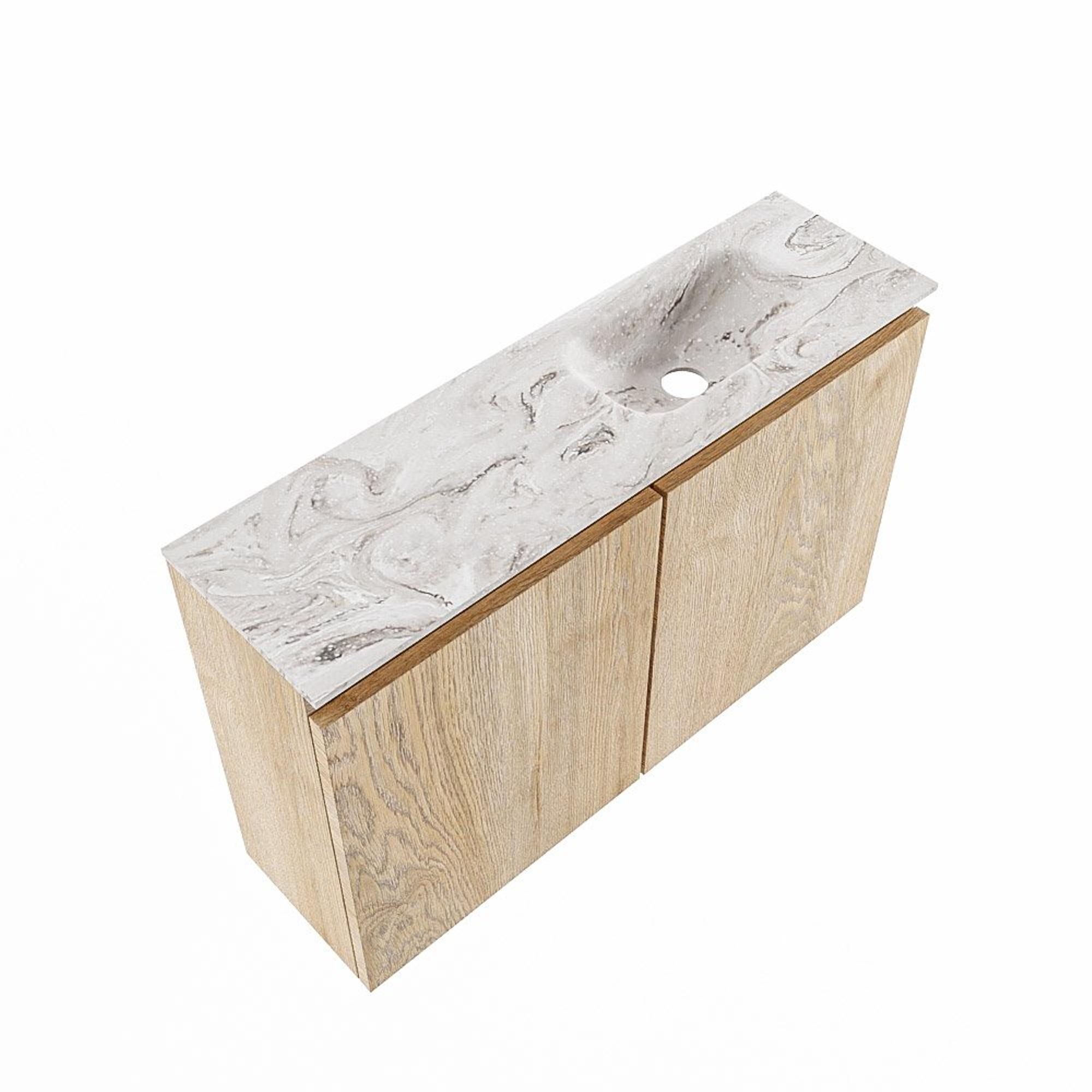 MONDIAZ TURE-DLUX Meuble de toilette 80cm Washed Oak. Lavabo EDEN Glace position à droite. Avec 1 trou de robinet.