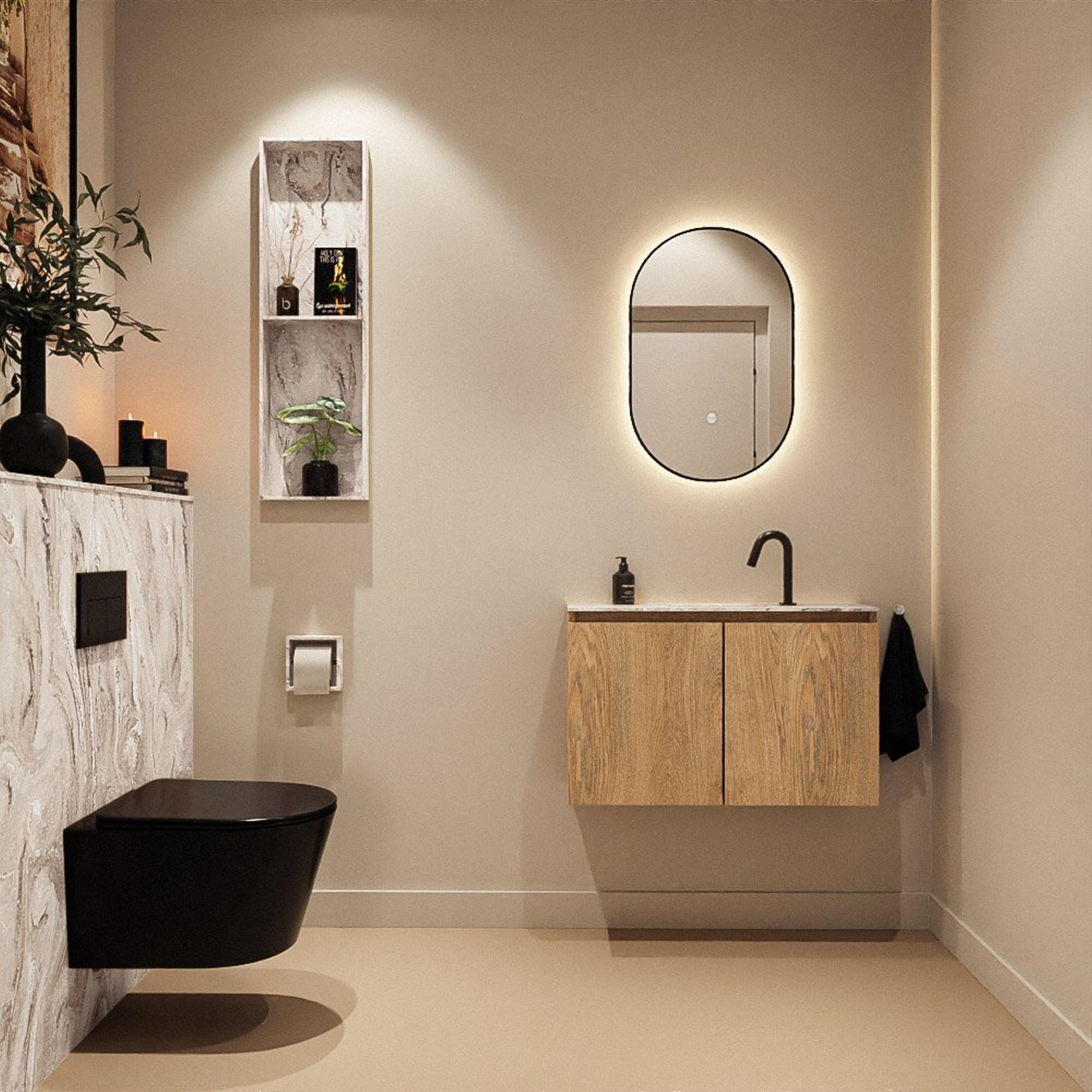 MONDIAZ TURE-DLUX Meuble WC 80 cm Washed Oak. Lavabo EDEN Glace position milieu. Avec 1 trou de robinet.