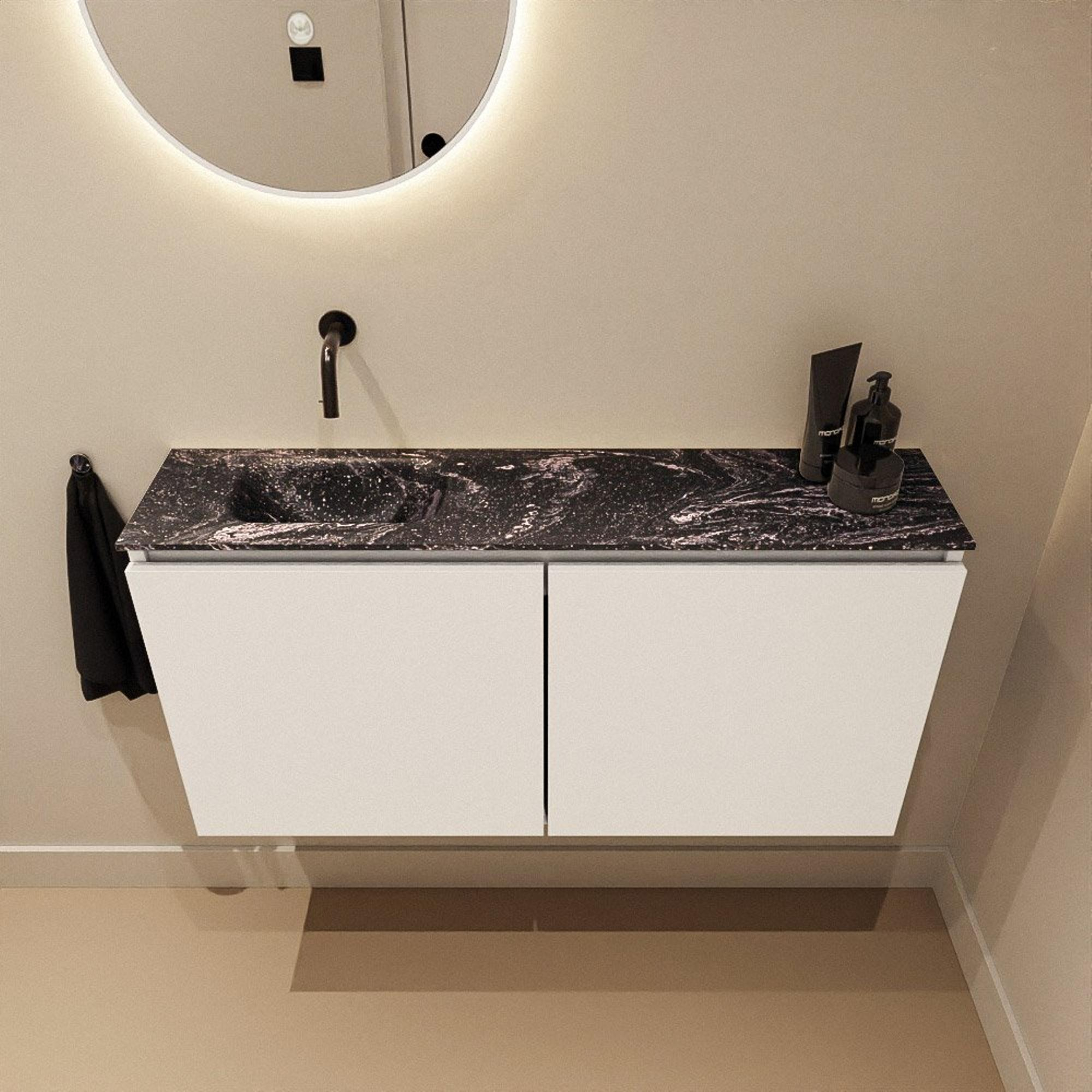 MONDIAZ TURE-DLUX meuble WC 100 cm Talc. EDEN lavabo Lava position gauche. Sans trou de robinet.