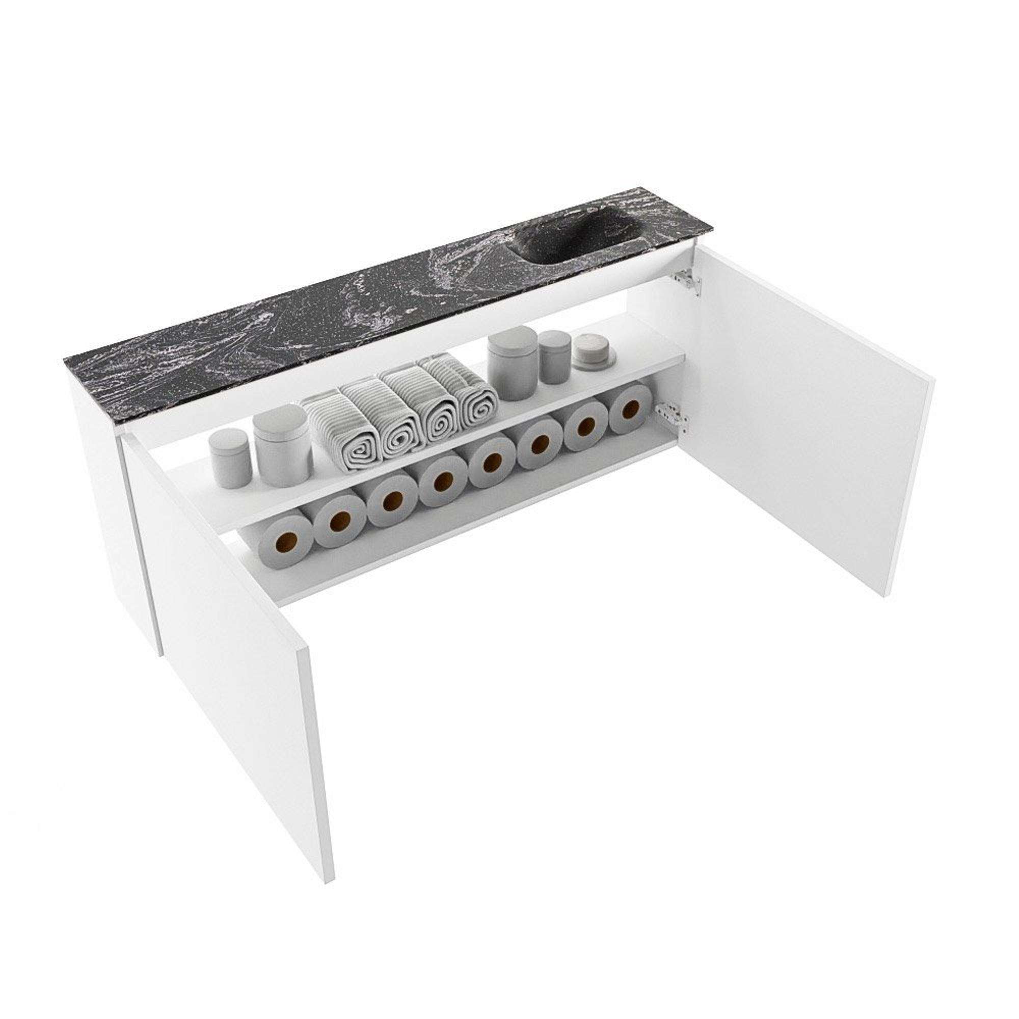 MONDIAZ TURE-DLUX meuble WC 120 cm Talc. EDEN lavabo Lava position à droite. Sans trou de robinet.