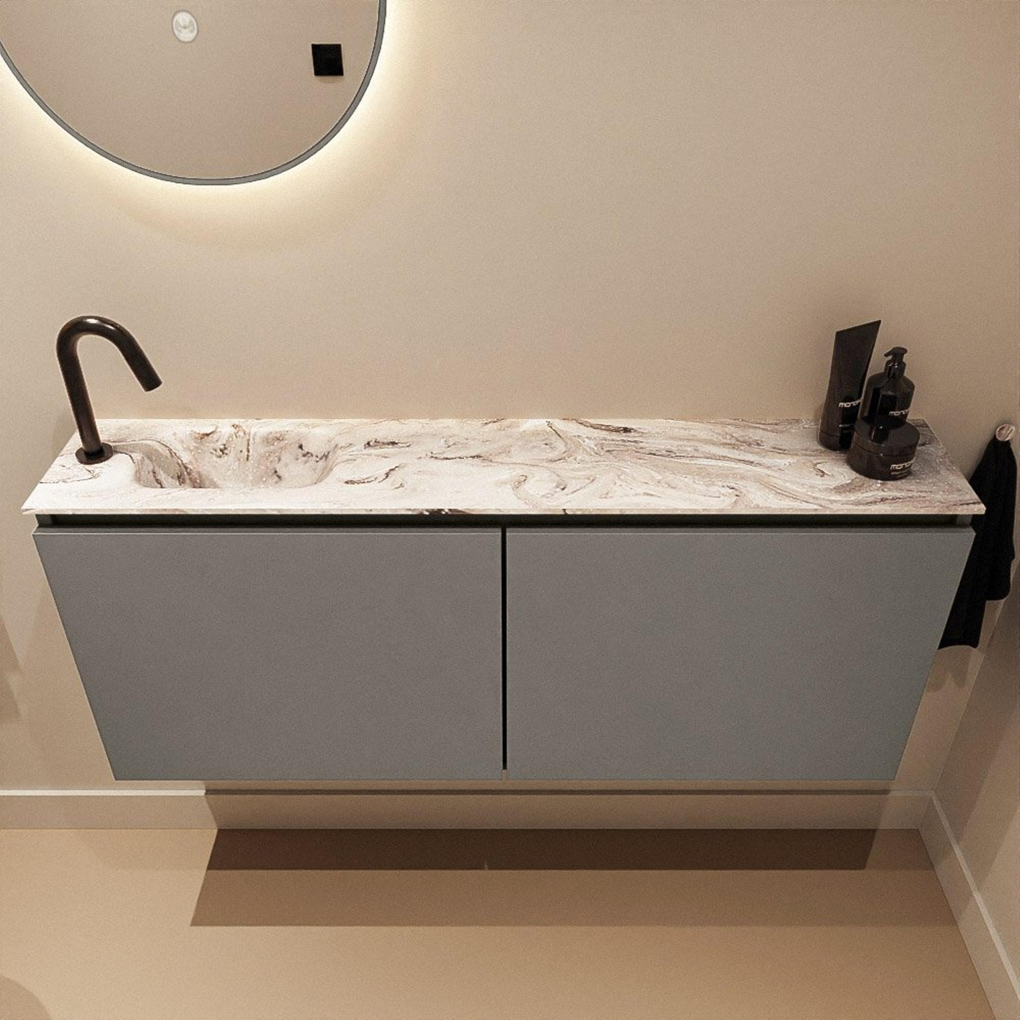 MONDIAZ TURE-DLUX Meuble WC 120cm Smoke. Lavabo EDEN Glace position gauche. Avec 1 trou de robinet.