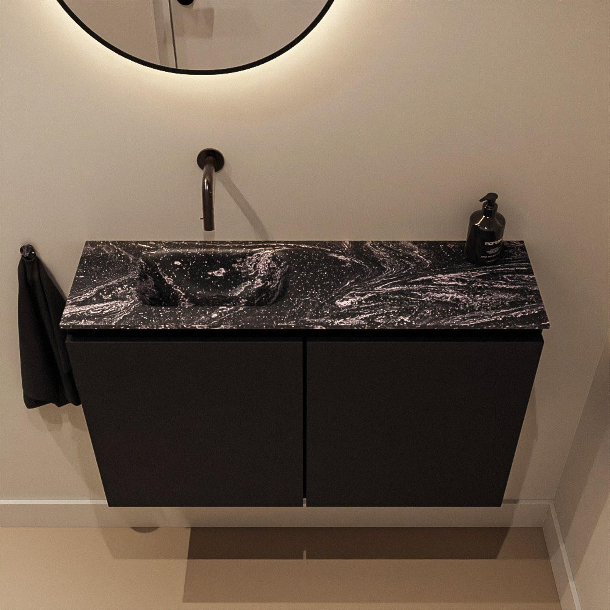 - Couleur Urban moderne avec plan noir et lavabo Eden en Lava pour un aspect luxueux et contemporain.