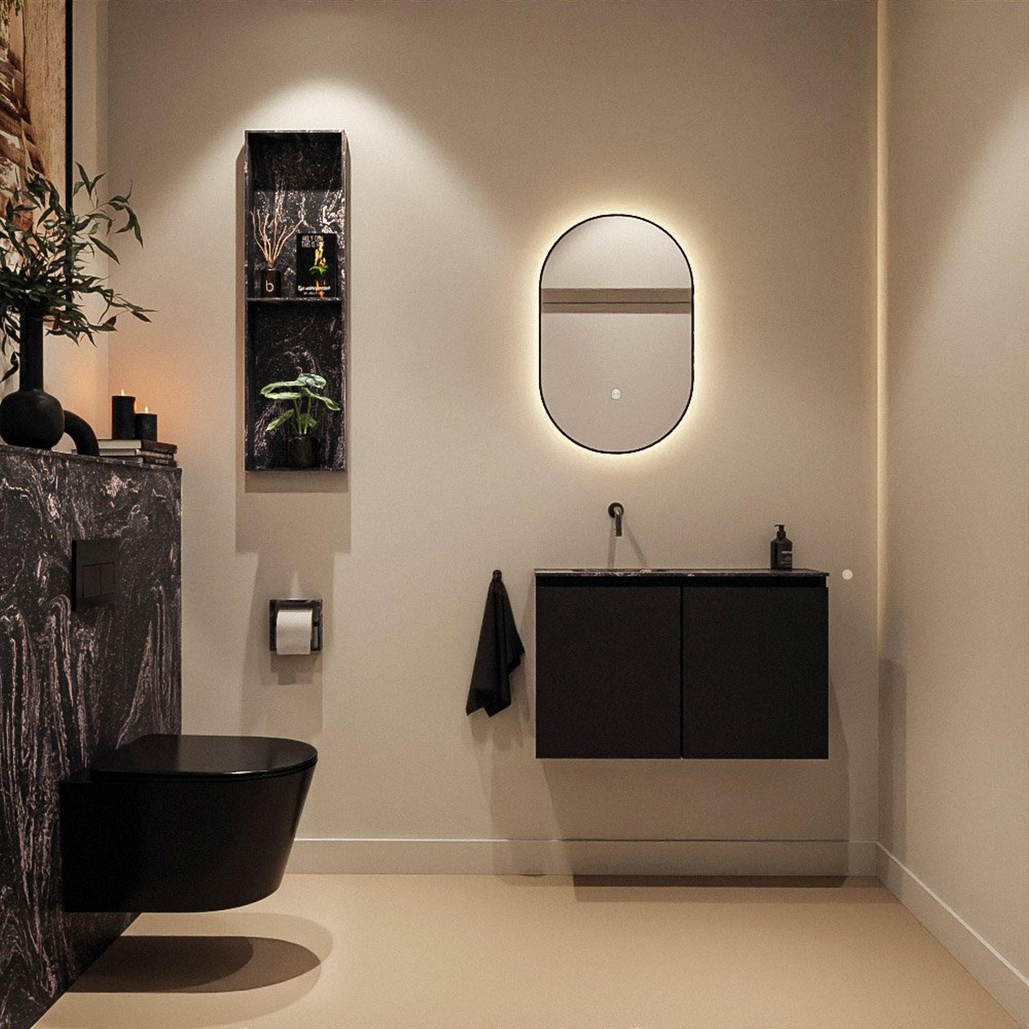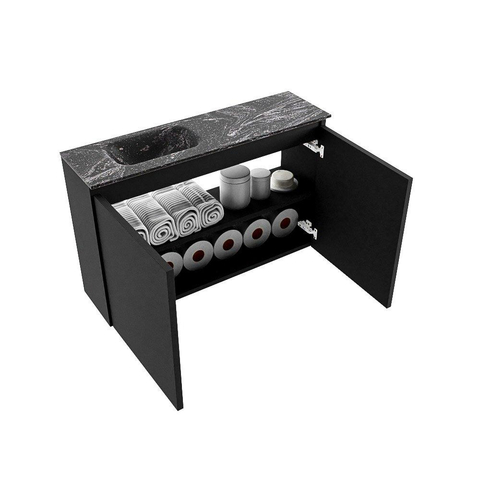 MONDIAZ TURE-DLUX Meuble de toilette 80 cm Urban. EDEN lavabo Lava position gauche. Sans trou de robinet.