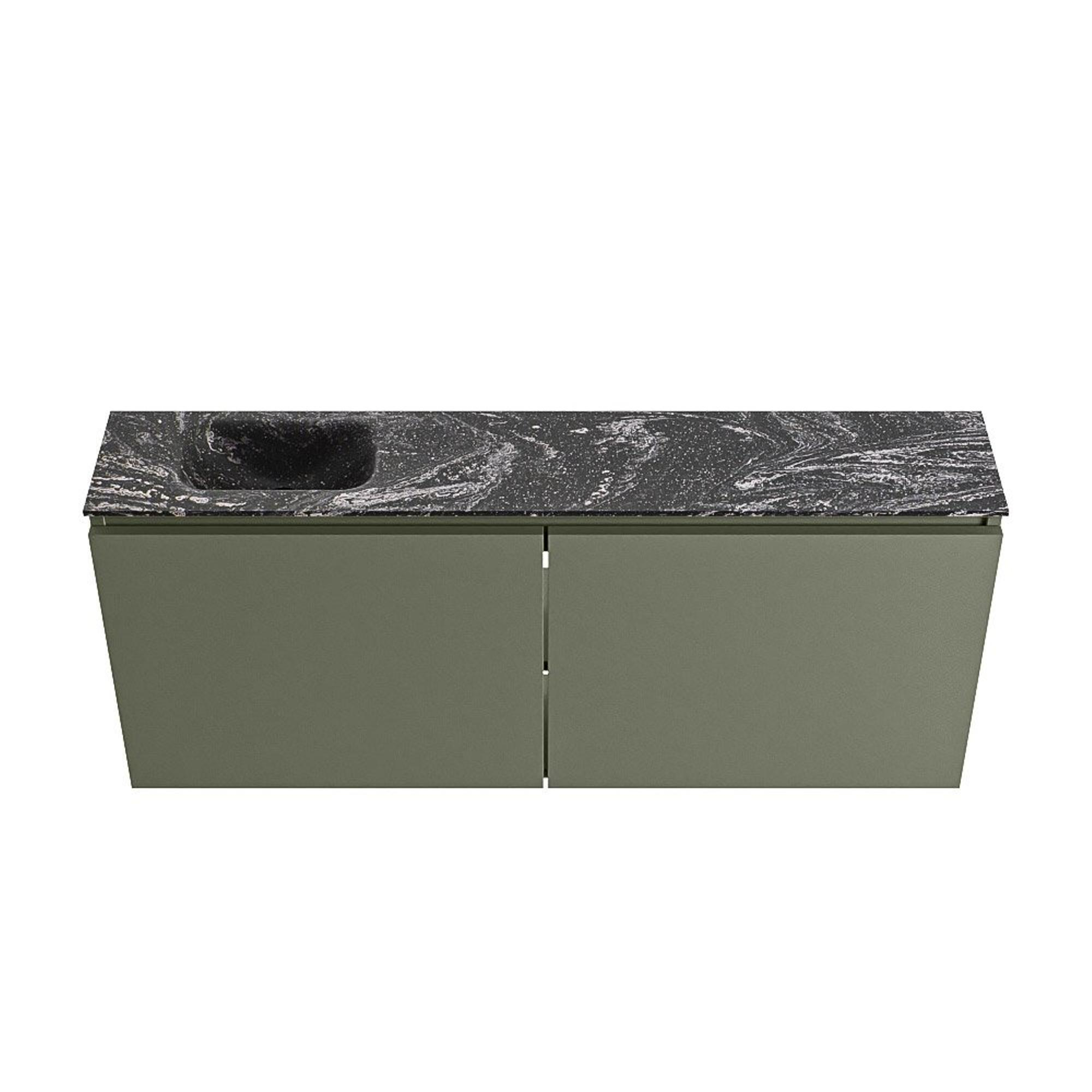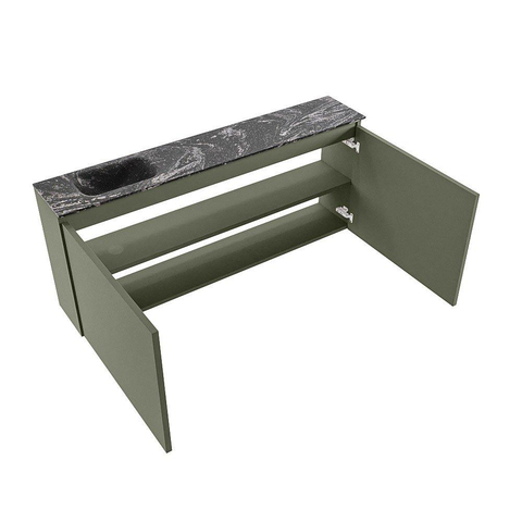MONDIAZ TURE-DLUX Meuble de toilettes 120cm Army. Lavabo EDEN Lava position gauche. Avec 1 trou de robinet.