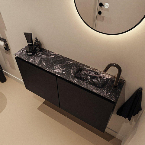 MONDIAZ TURE-DLUX Meuble de toilettes 100 cm Urban. EDEN lavabo Lava position à droite. Avec 1 trou de robinet.