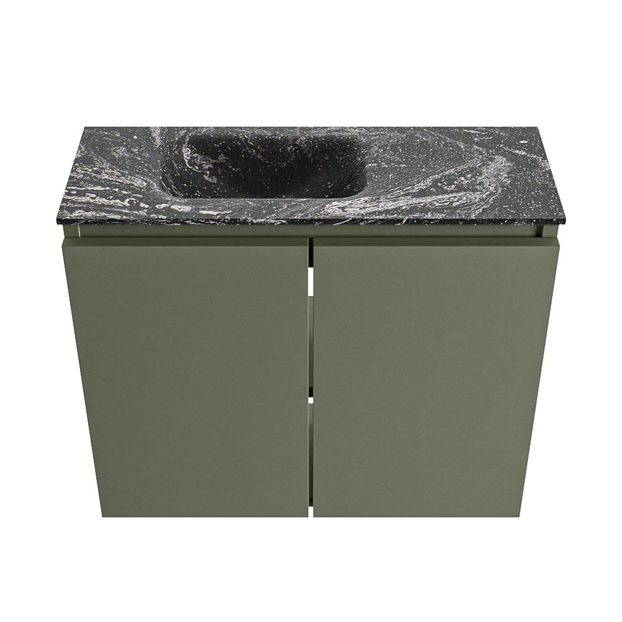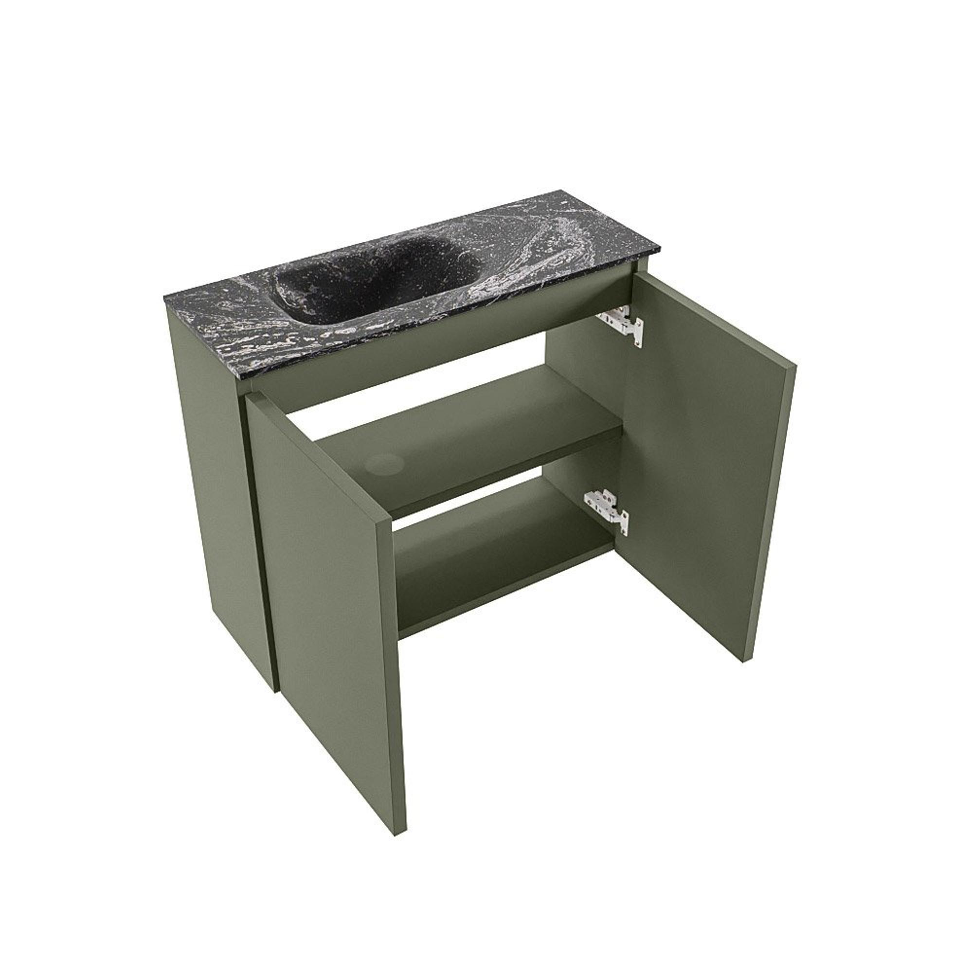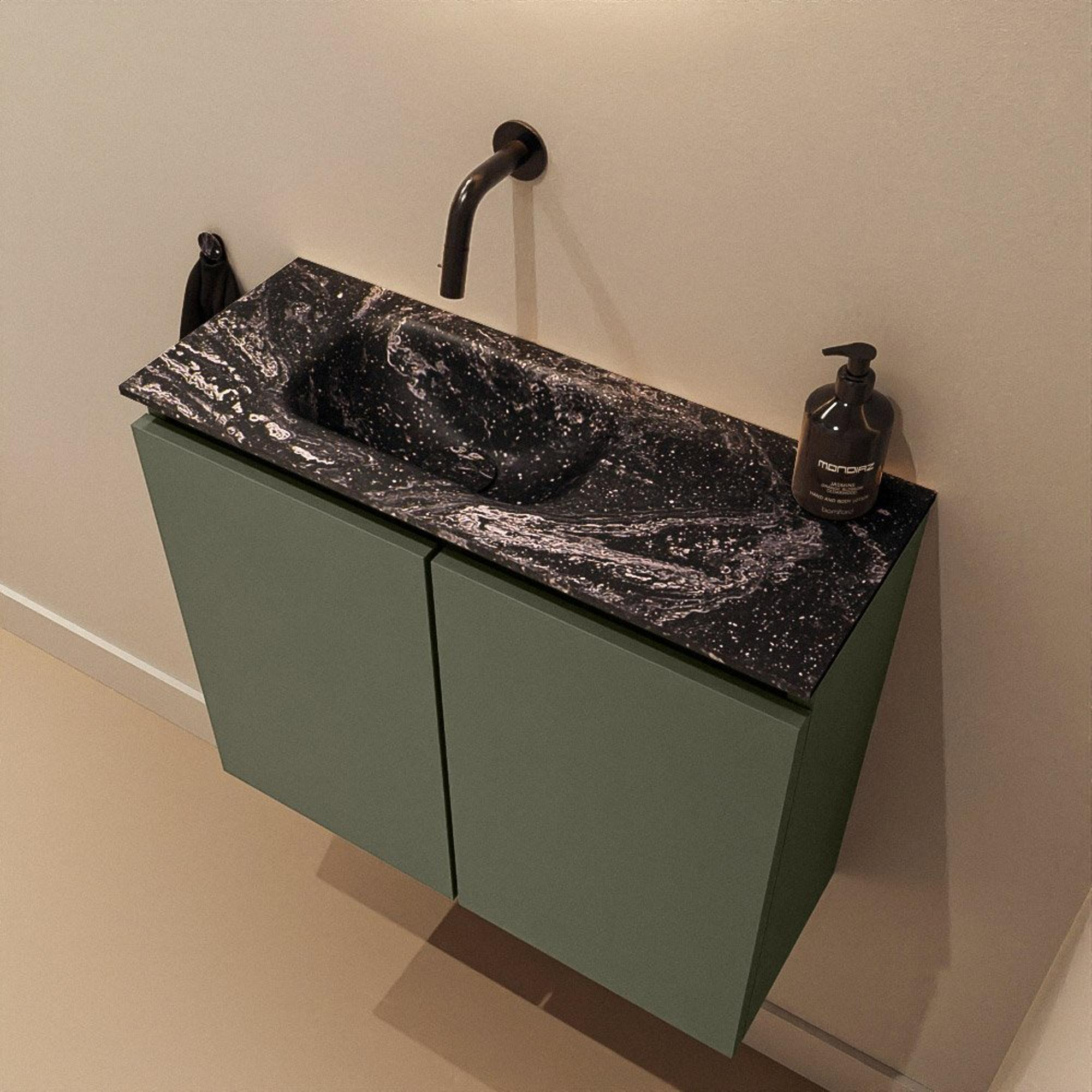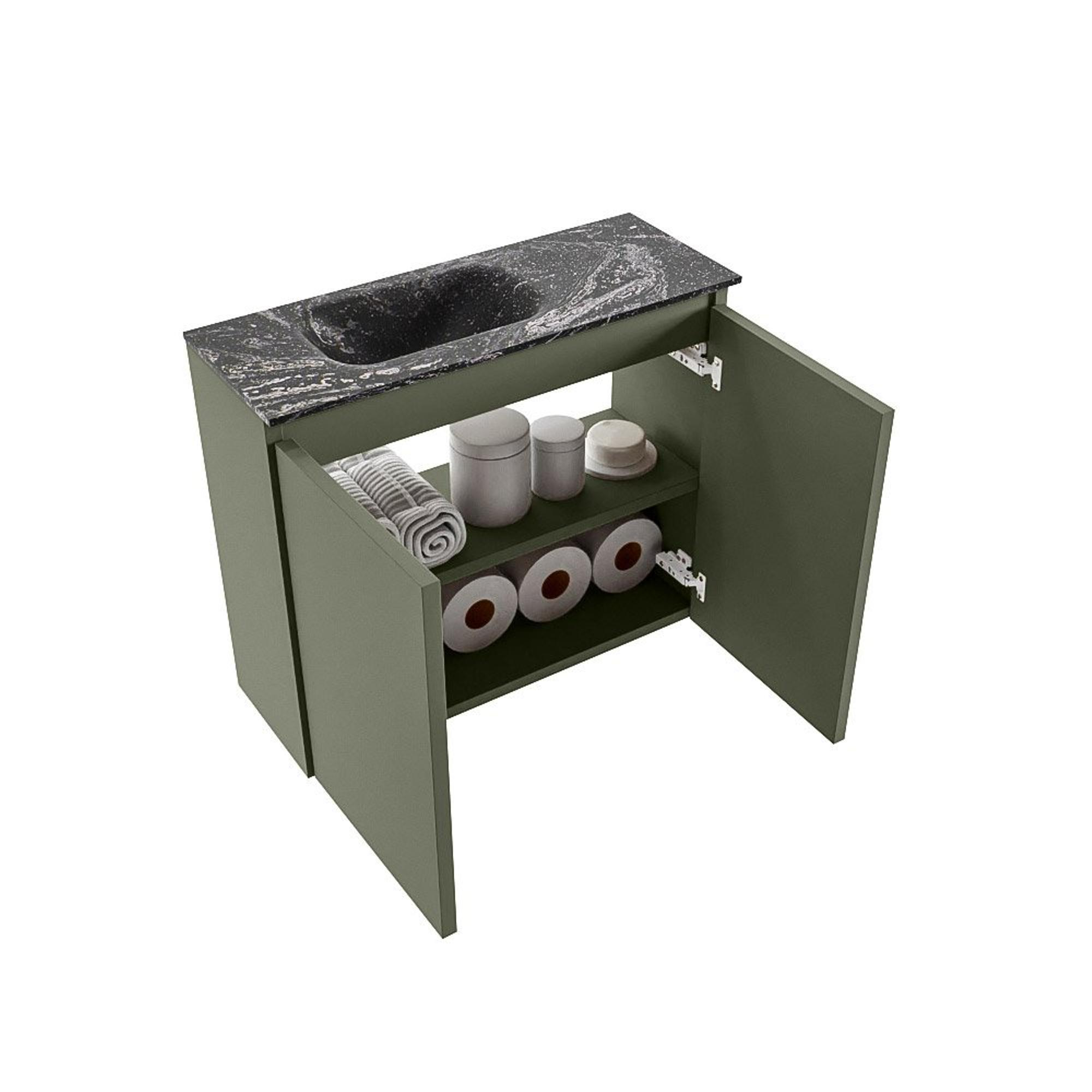 MONDIAZ TURE-DLUX Meuble de toilette 60cm Army. Lavabo EDEN Lava position gauche. Sans trou de robinet.