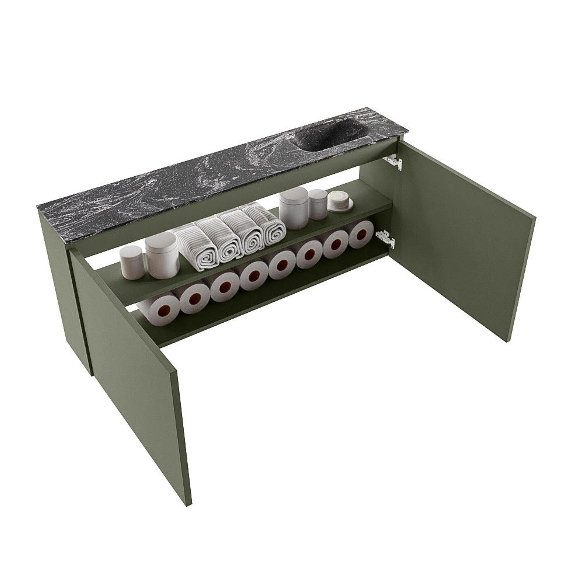 MONDIAZ TURE-DLUX meuble WC 120cm Army. Lavabo EDEN Lava position à droite. Avec 1 trou de robinet.