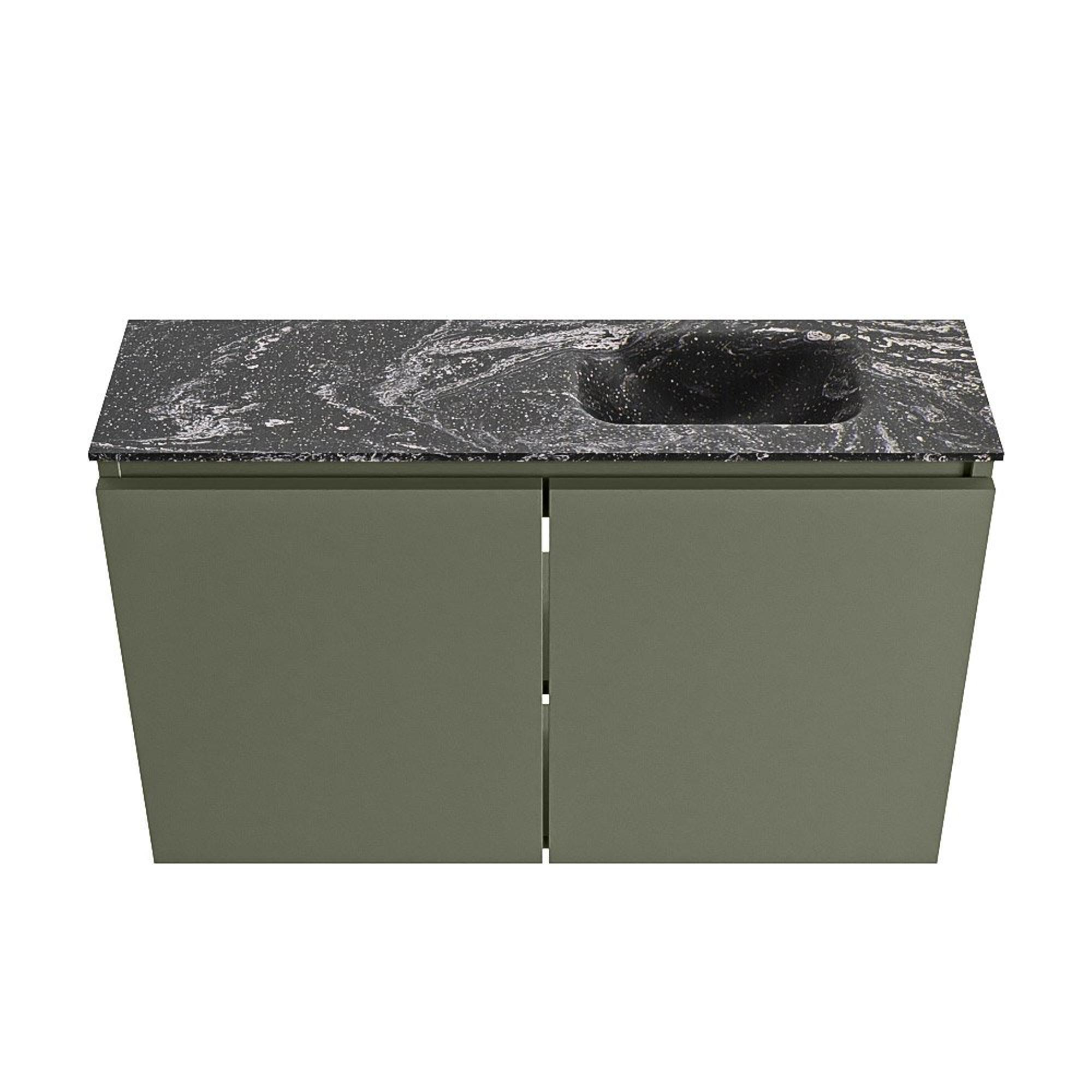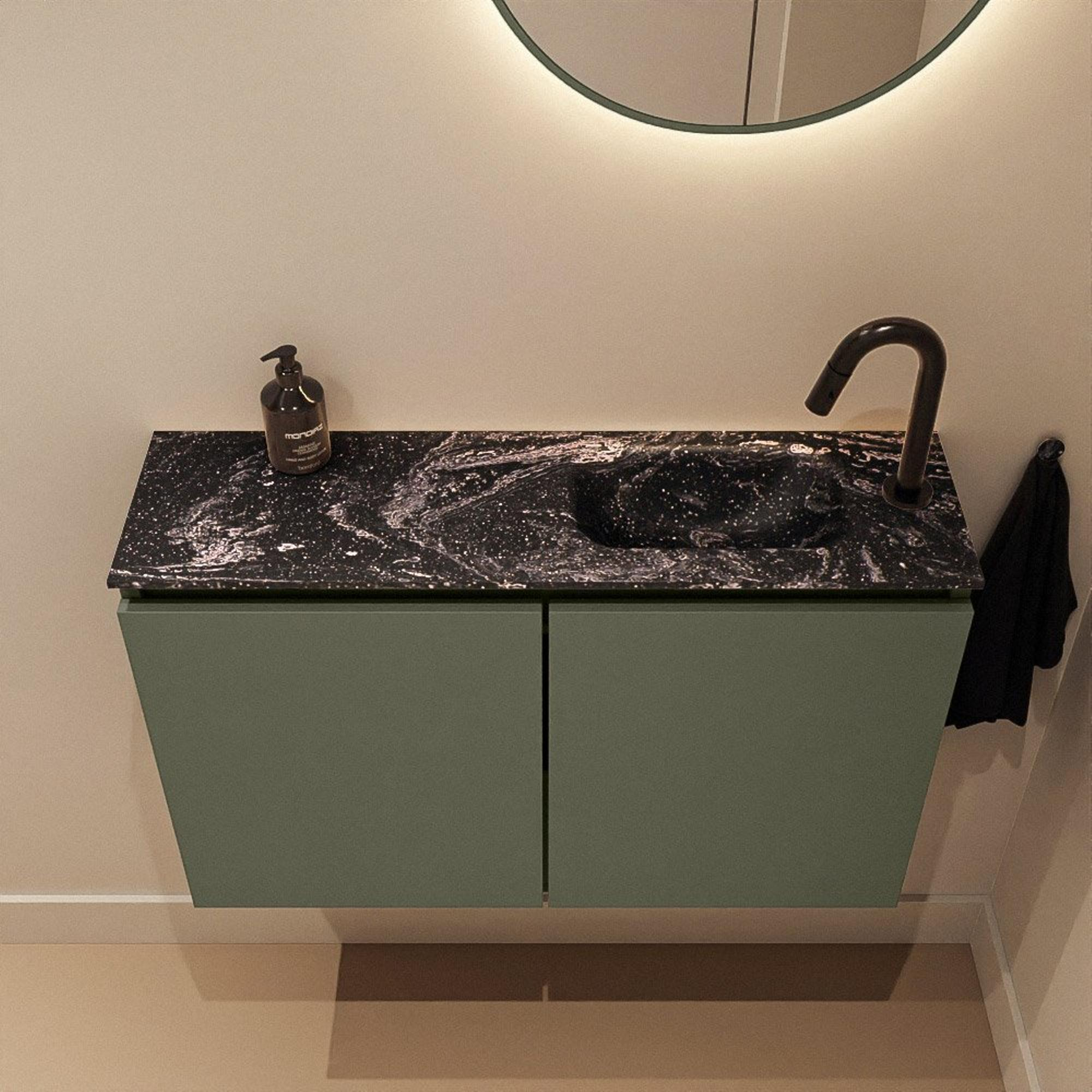 MONDIAZ TURE-DLUX Meuble de WC 80 cm Army. Lavabo EDEN Lava position droite. Avec 1 trou de robinet.