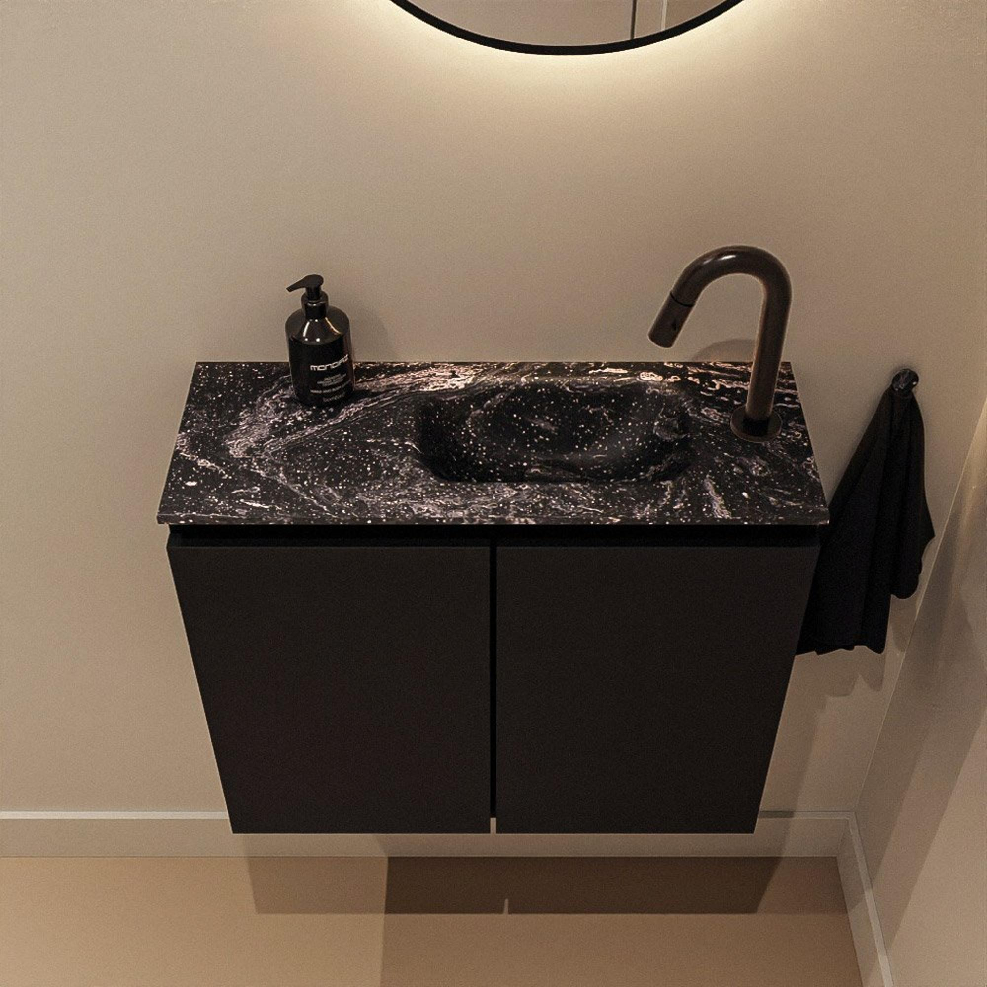 MONDIAZ TURE-DLUX meuble de toilettes 60 cm Urban. EDEN lavabo Lava position droite. Avec 1 trou de robinet.