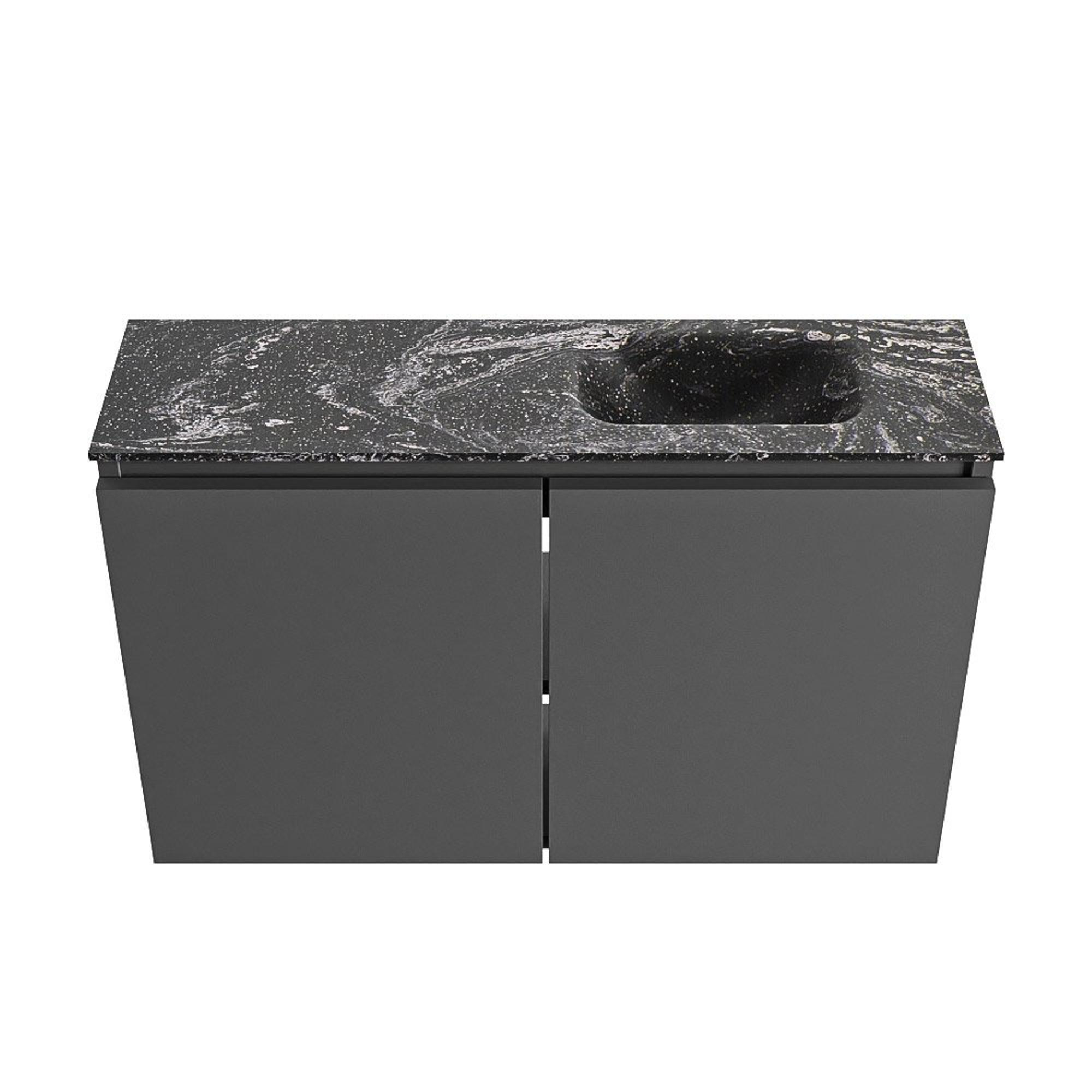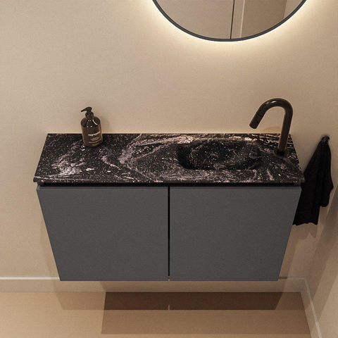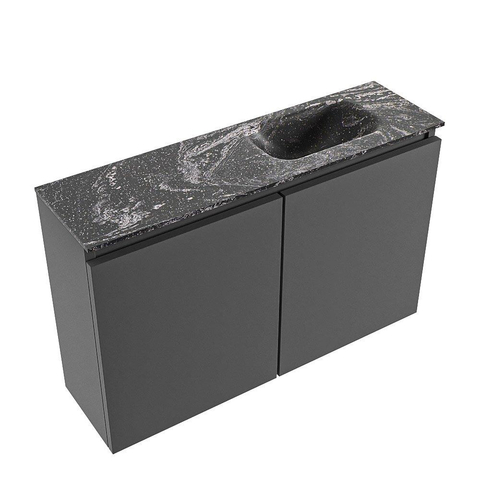 MONDIAZ TURE-DLUX Meuble WC 80 cm Dark Grey. EDEN lavabo Lava position droite. Avec 1 trou de robinet.