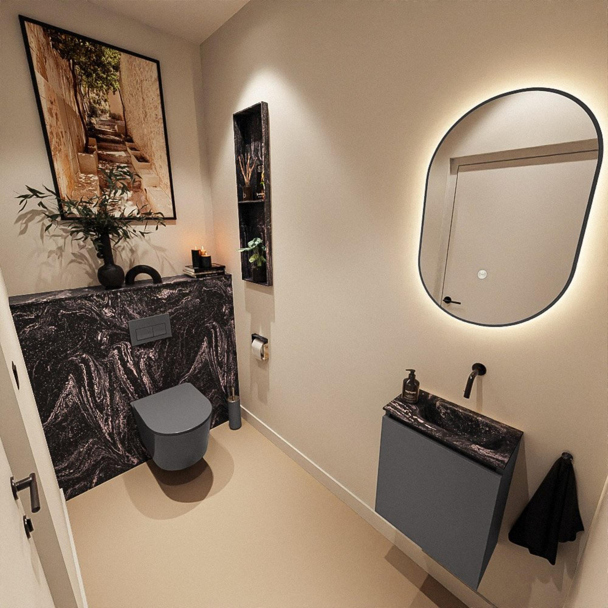 MONDIAZ TURE-DLUX Meuble de toilettes 40 cm Dark Grey. EDEN lavabo Lava position à droite. Sans trou de robinet.