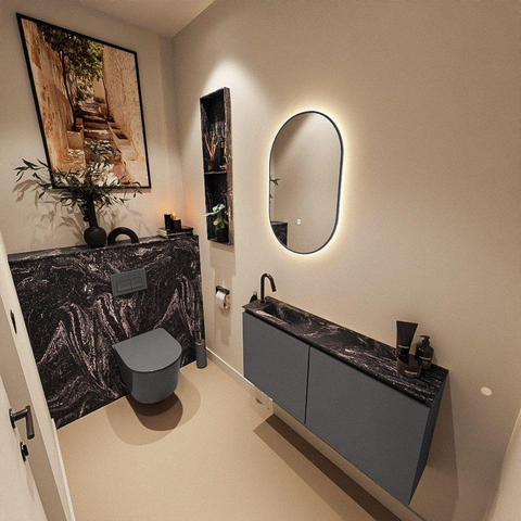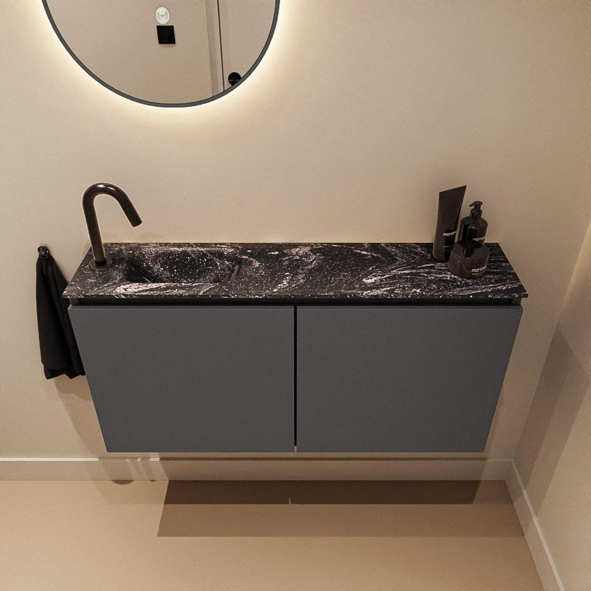 MONDIAZ TURE-DLUX meuble WC 100 cm Dark Grey. Lavabo EDEN Lava position gauche. Avec 1 trou de robinet.