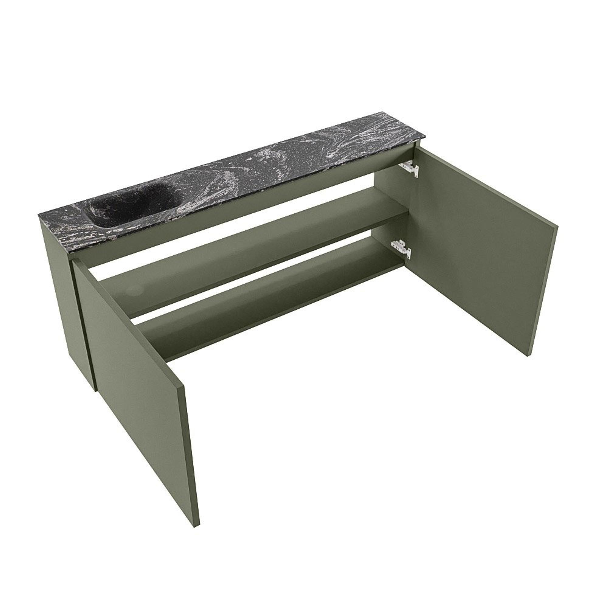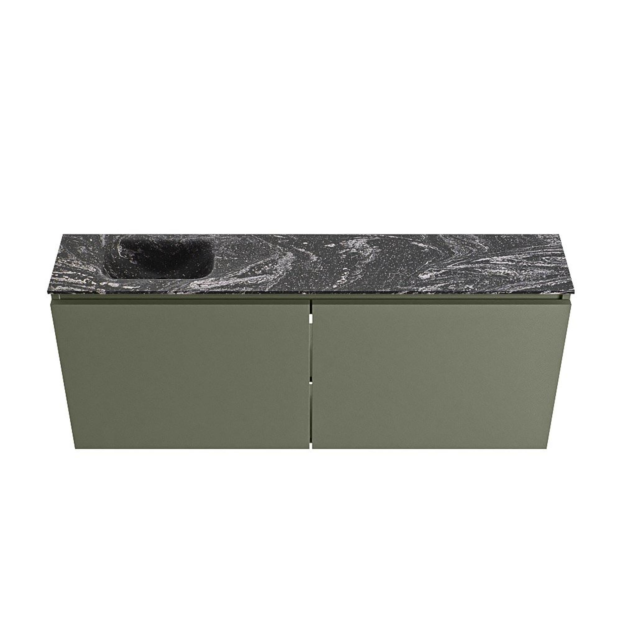 MONDIAZ TURE-DLUX meuble WC 120 cm Army. Lavabo EDEN Lava position gauche. Sans trou de robinet.