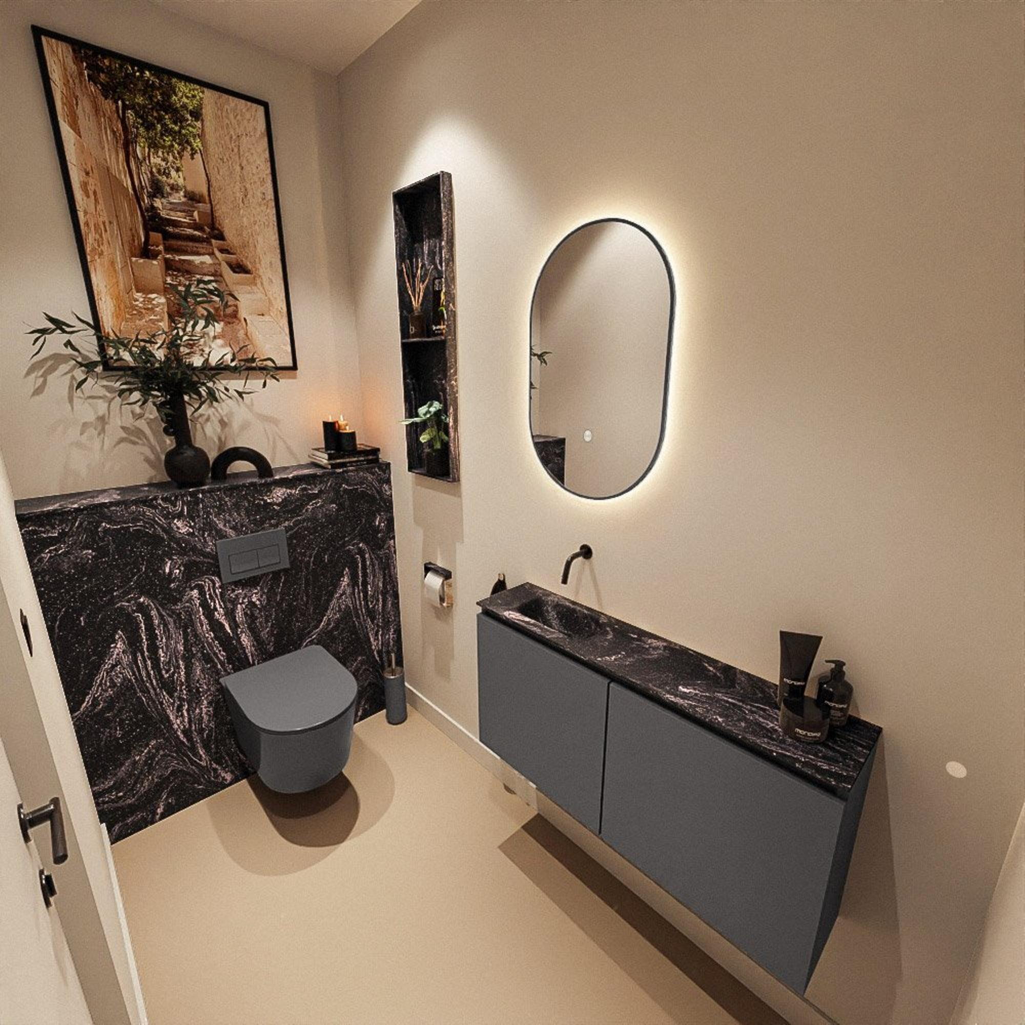 MONDIAZ TURE-DLUX Meuble de toilettes 100 cm Dark Grey. Lavabo EDEN Lava position gauche. Sans trou de robinet.