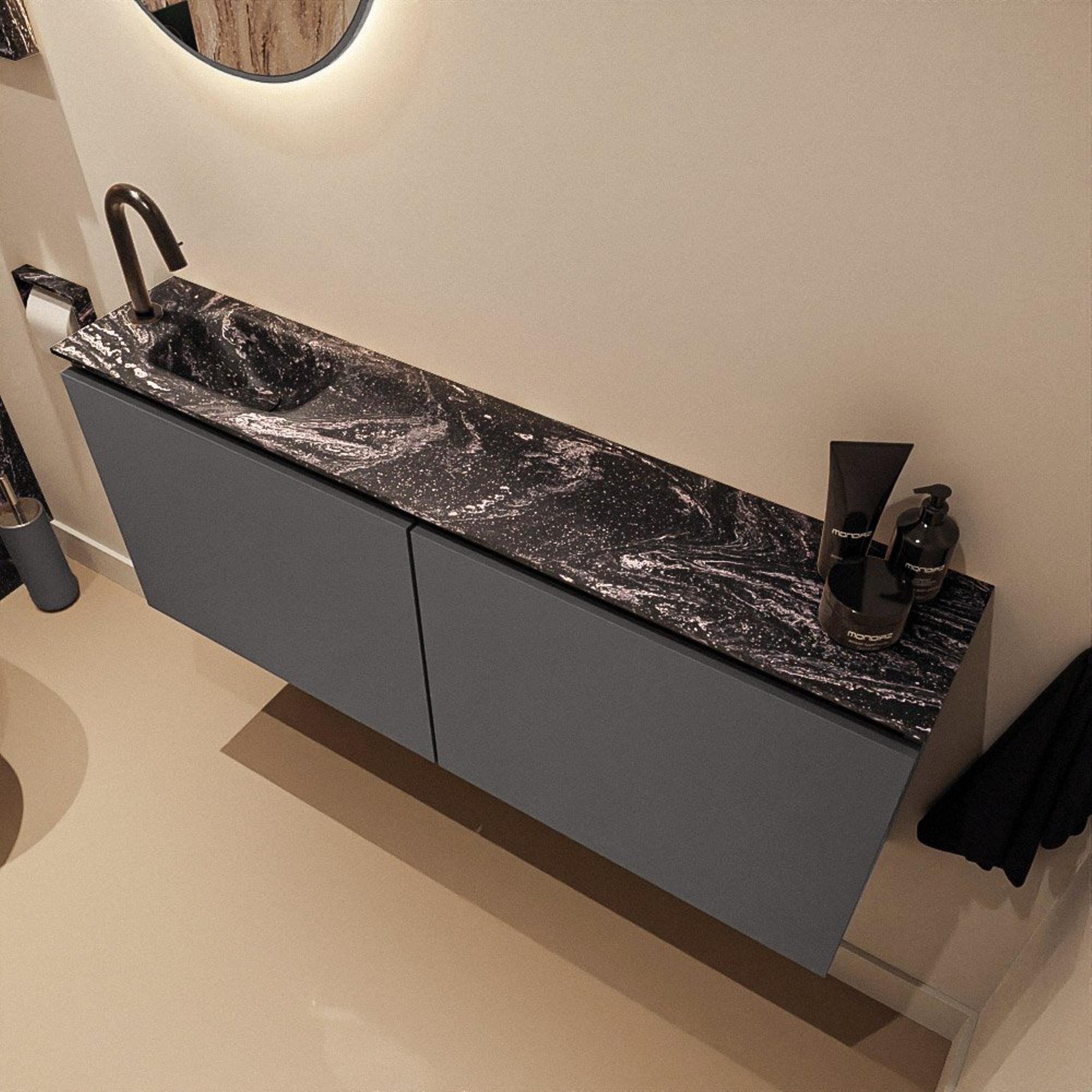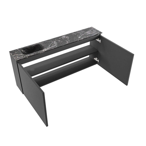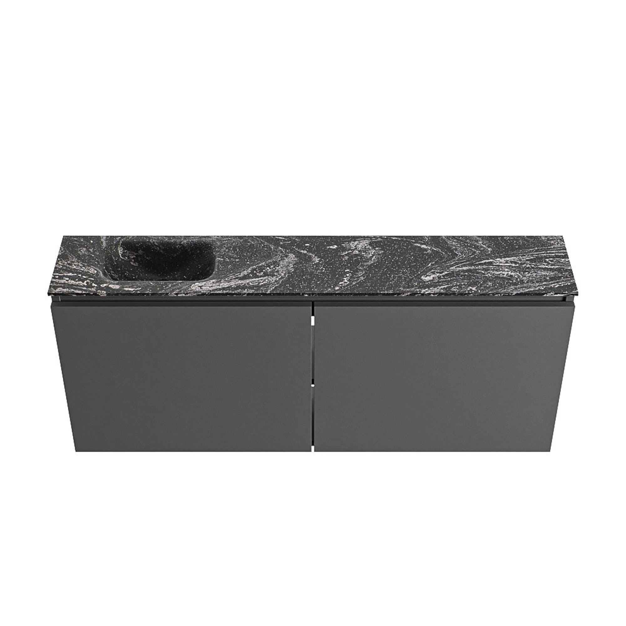 MONDIAZ TURE-DLUX meuble de toilettes 120 cm Dark Grey. Lavabo EDEN Lava position gauche. Avec 1 trou de robinet.