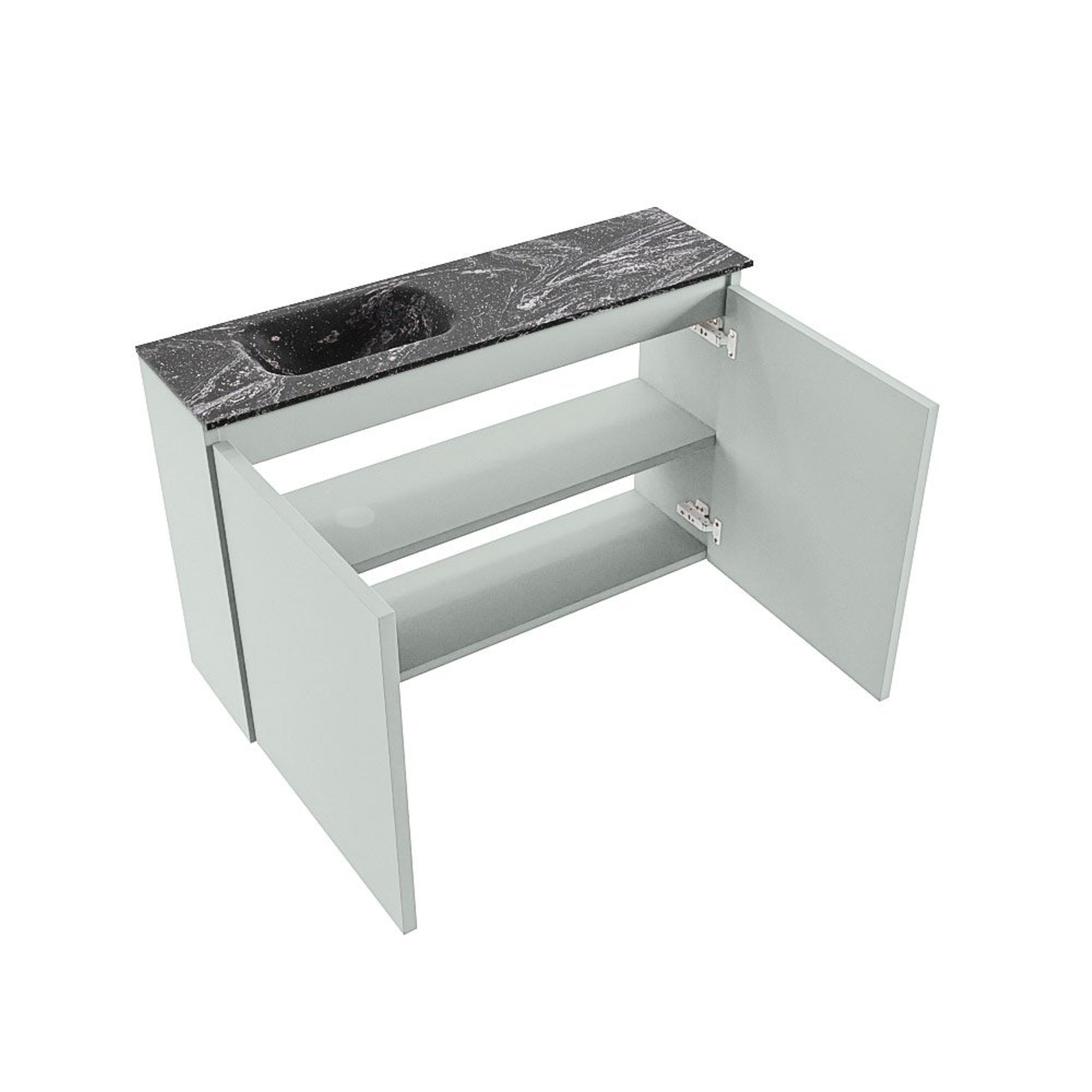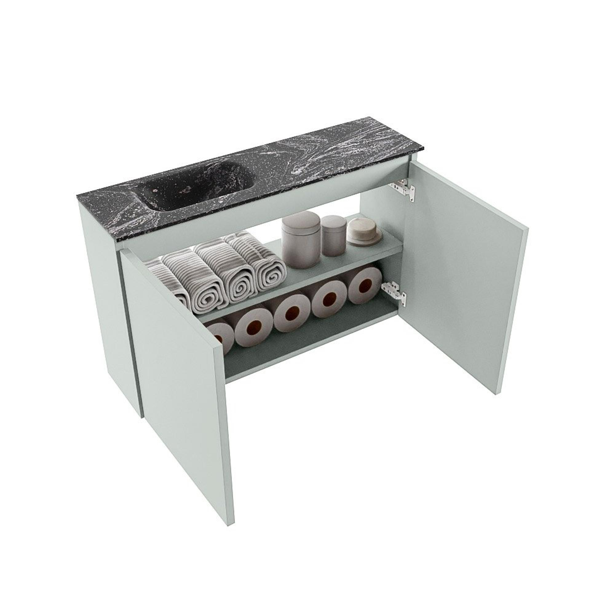 MONDIAZ TURE-DLUX meuble WC 80 cm Greey. Lavabo EDEN Lava position gauche. Sans trou de robinet.
