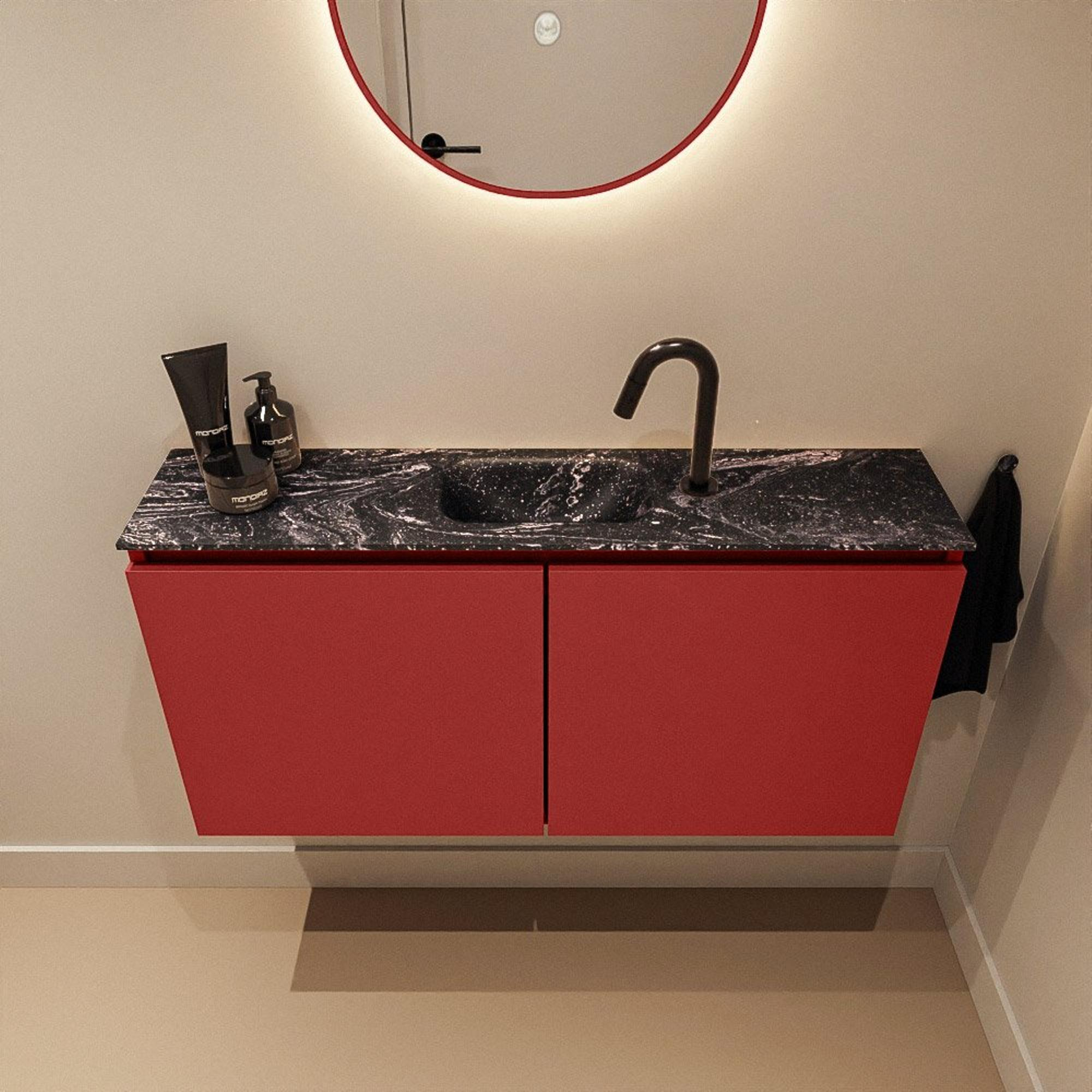 MONDIAZ TURE-DLUX Meuble WC 100 cm Fire. EDEN lavabo Lava position milieu. Avec 1 trou de robinet.