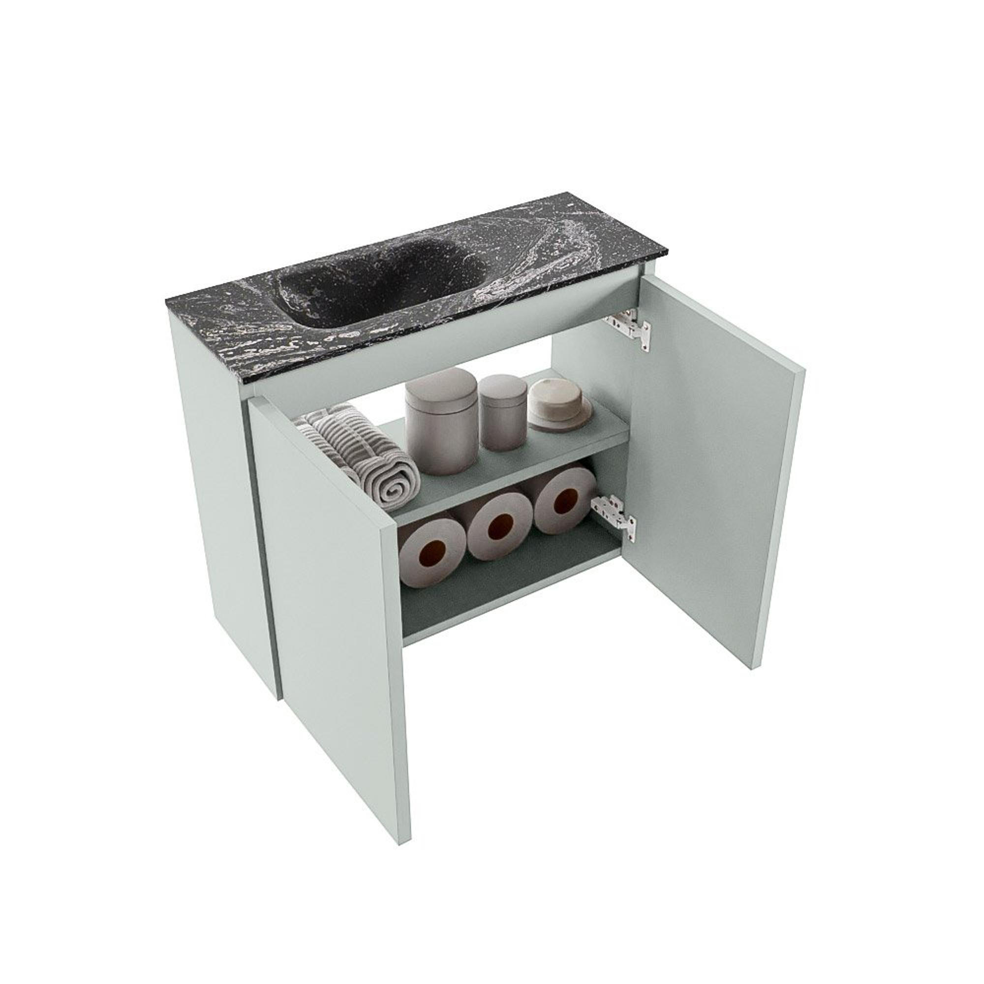 MONDIAZ TURE-DLUX Meuble de toilettes 60 cm Greey. EDEN lavabo Lava position gauche. Sans trou de robinet.