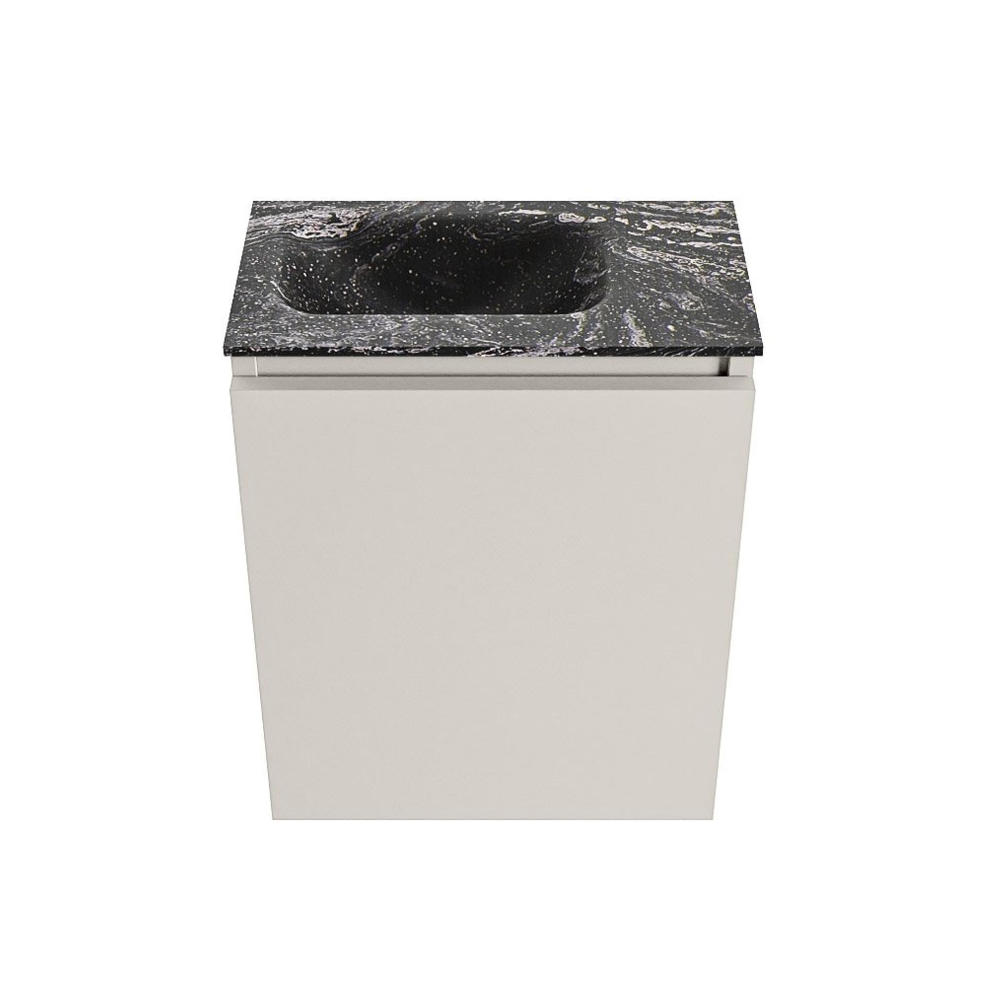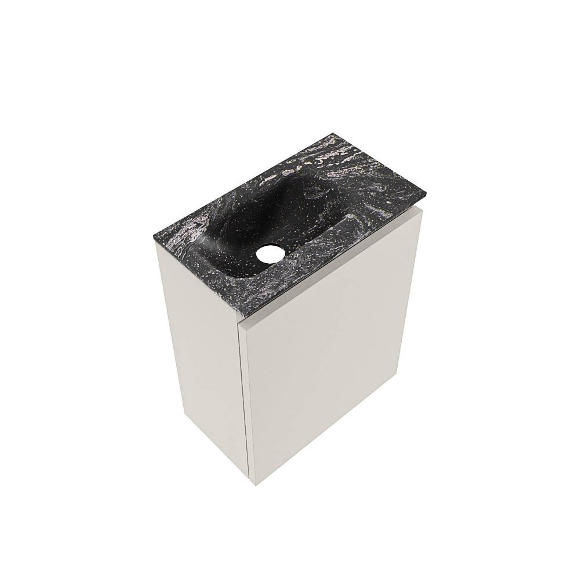 MONDIAZ TURE-DLUX Meuble de toilettes 40 cm Linen. Lavabo EDEN Lava position gauche. Sans trou de robinet.